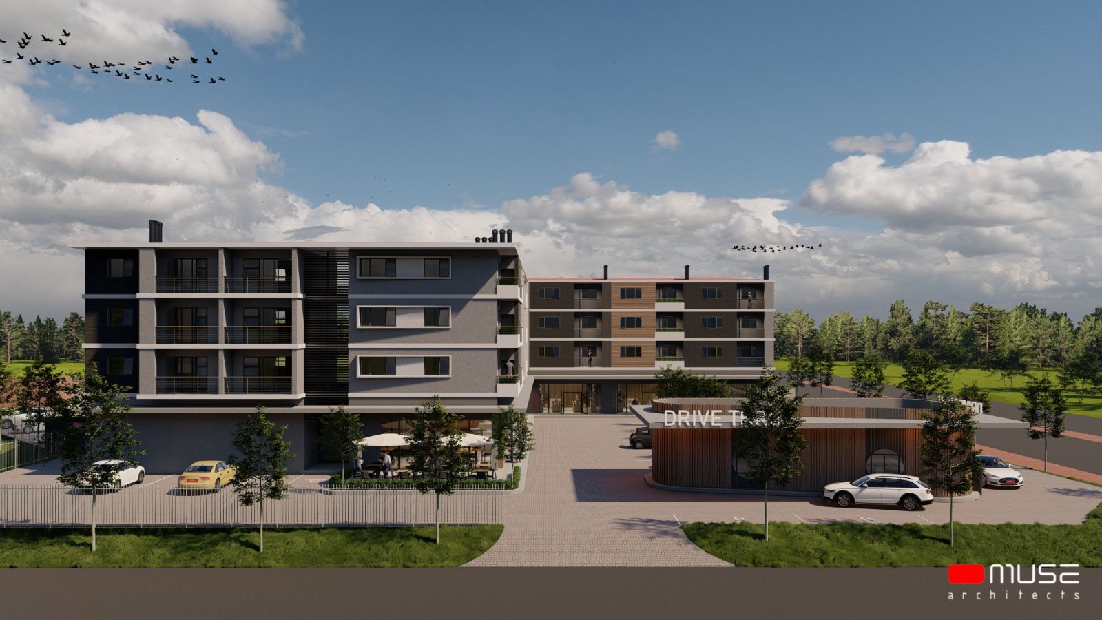 Conveniently located 2–10 minutes from Makro, schools, and preschools, with a range of on-site dining and drive-thru options. The mixed-use development includes a coffee shop and communal space, as well as a pizza franchise offering pick-up and delivery until midnight.