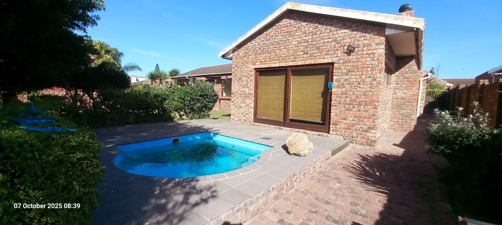 This is a real entertainers dream. Large entertainment area with a cuddle puddle pool with wooden deck, and indoor braai.