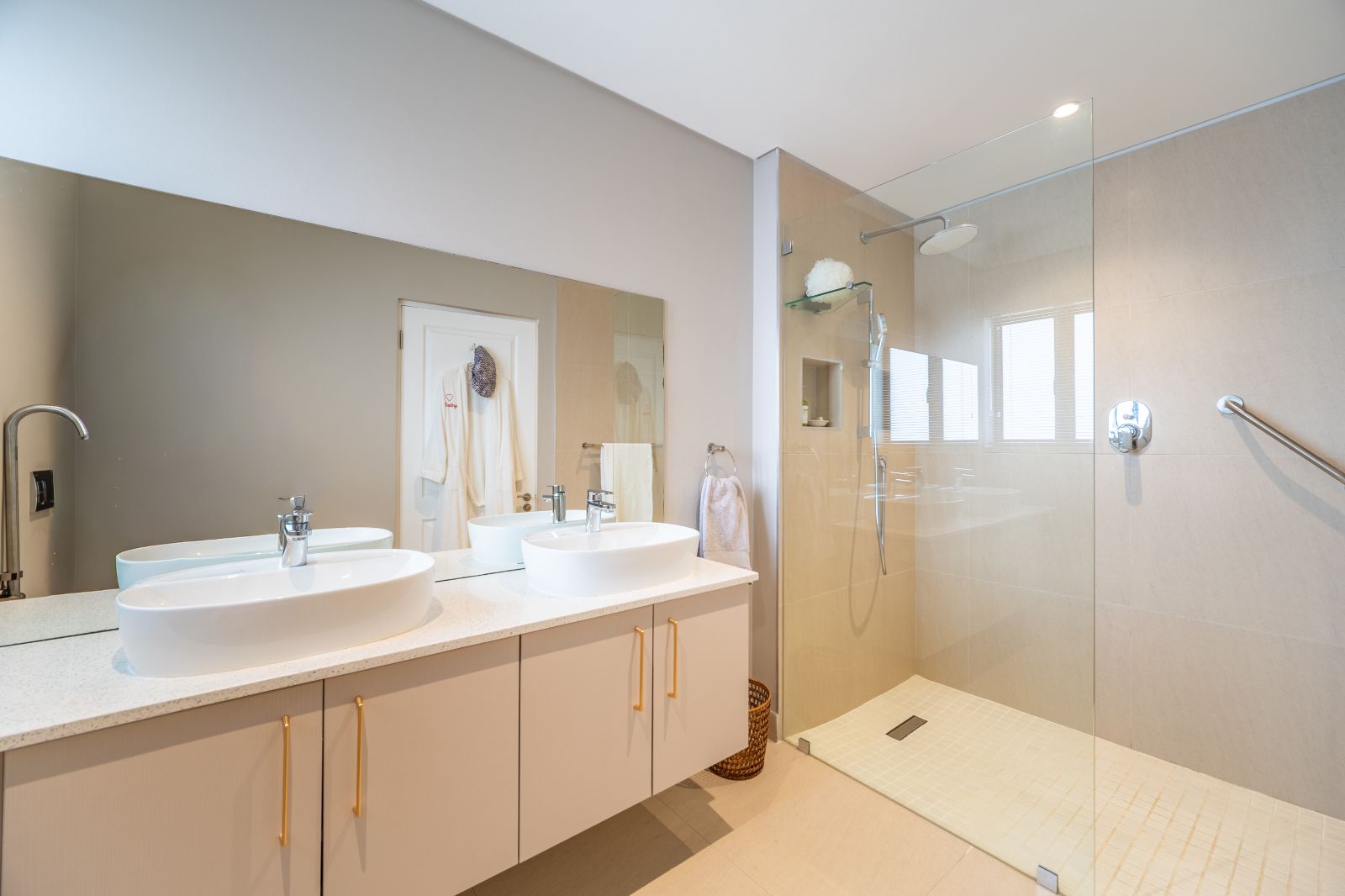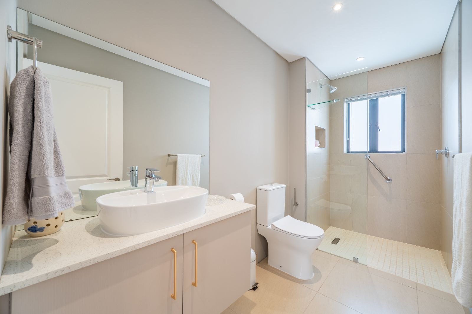 This stylish 150 m2 unit is thoughtfully designed with space, light and practicality in mind. It features two comfortable bedrooms and two modern bathrooms. The main bedroom includes a well-appointed en-suite bathroom with a shower, double basins and a toilet, while the guest bathroom is fitted with a shower, basin and toilet.