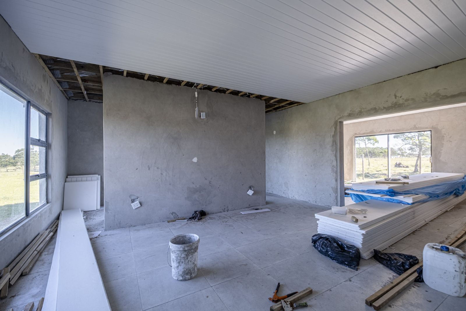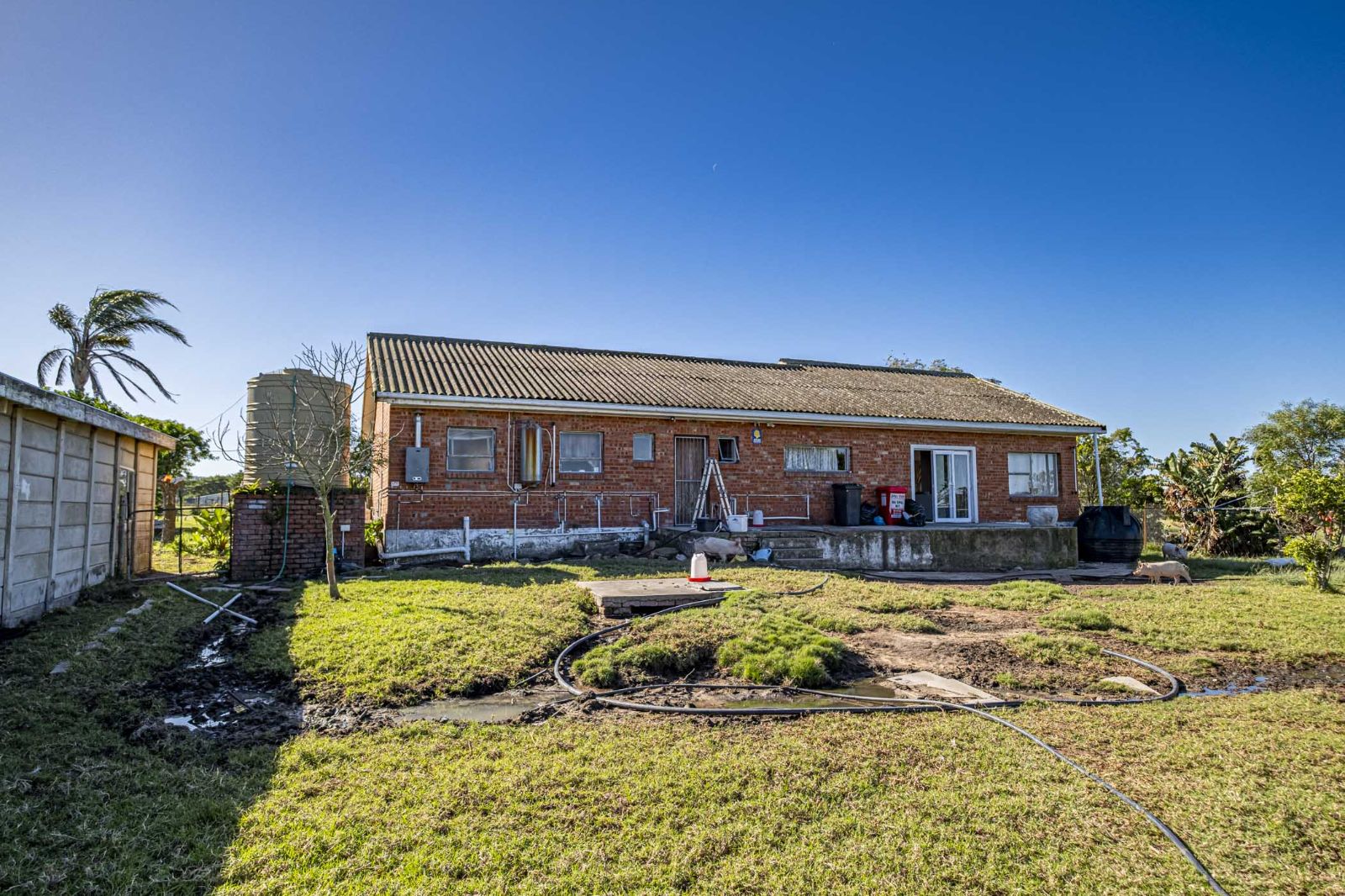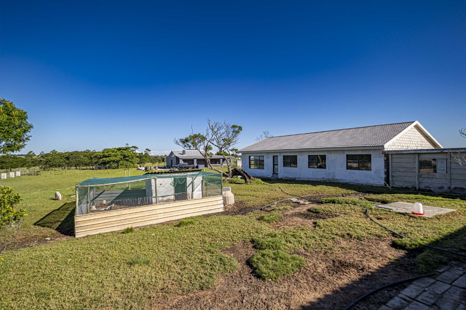 The main home is approximately 320sqm and offers 3 bedrooms, 2 bathrooms including a main en-suite, a kitchen, lounge, and a solid structure that needs a bit of attention and finishing in places.