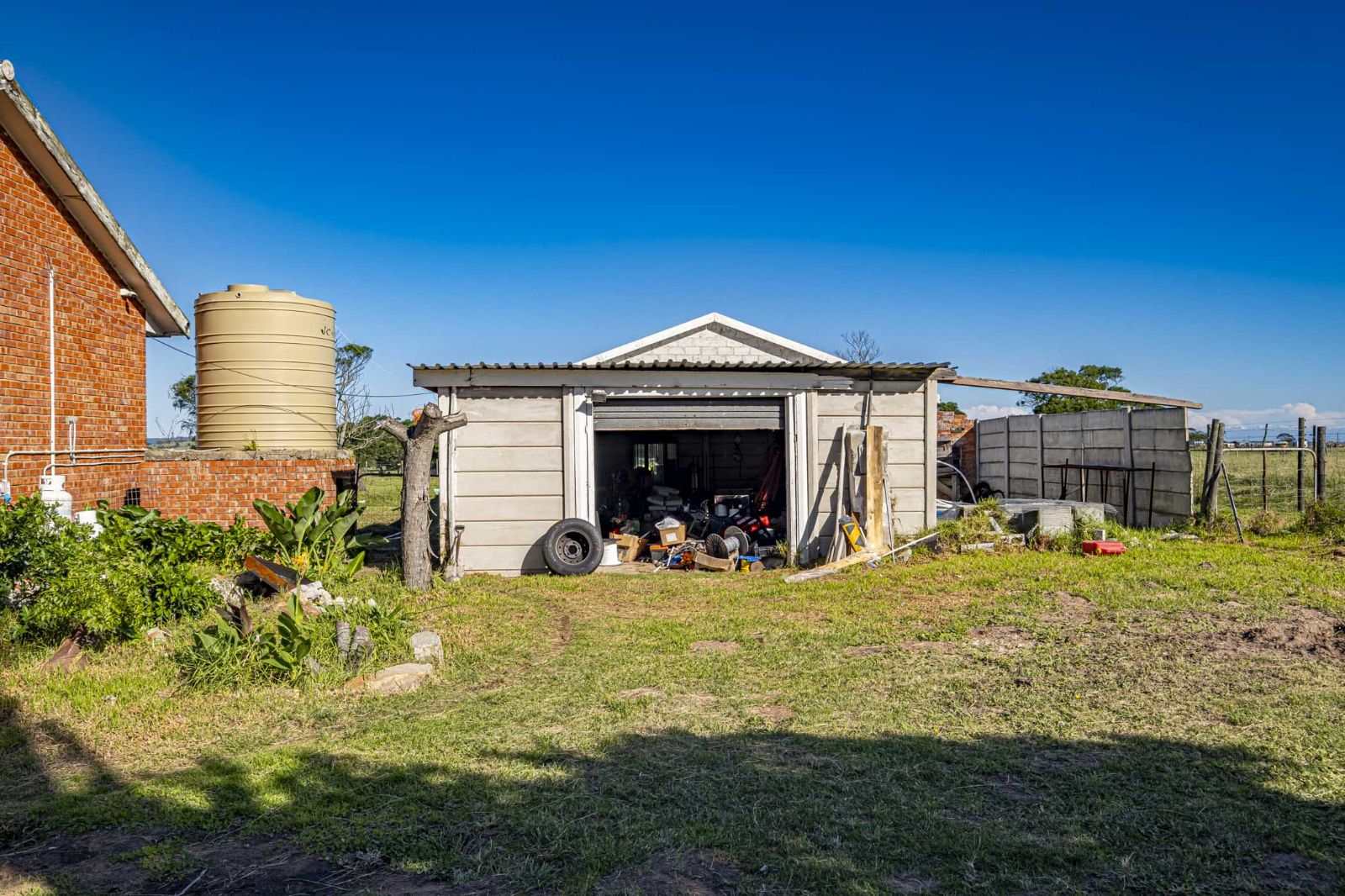 Water supply is one of the standout features, with a strong borehole producing approximately 1,600 litres per hour, a second borehole not currently in use, a water tank, and municipal electricity already connected.