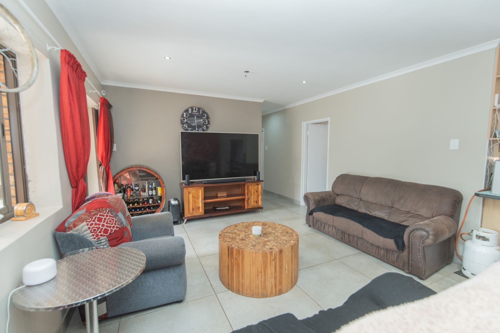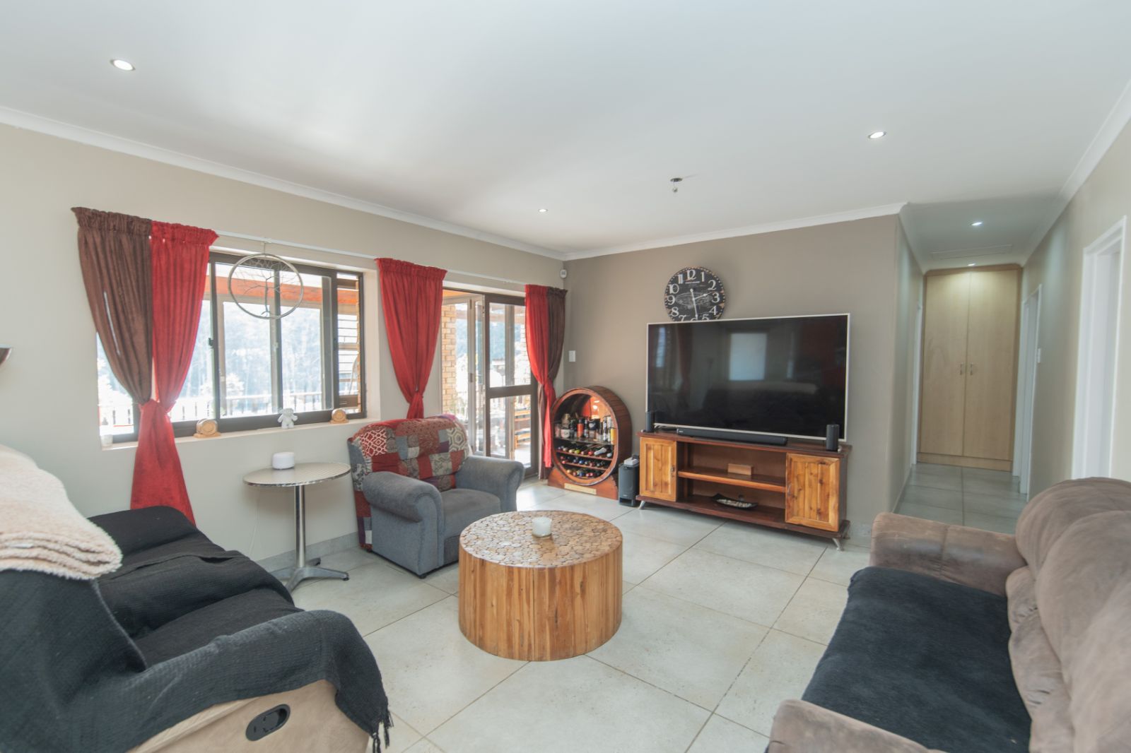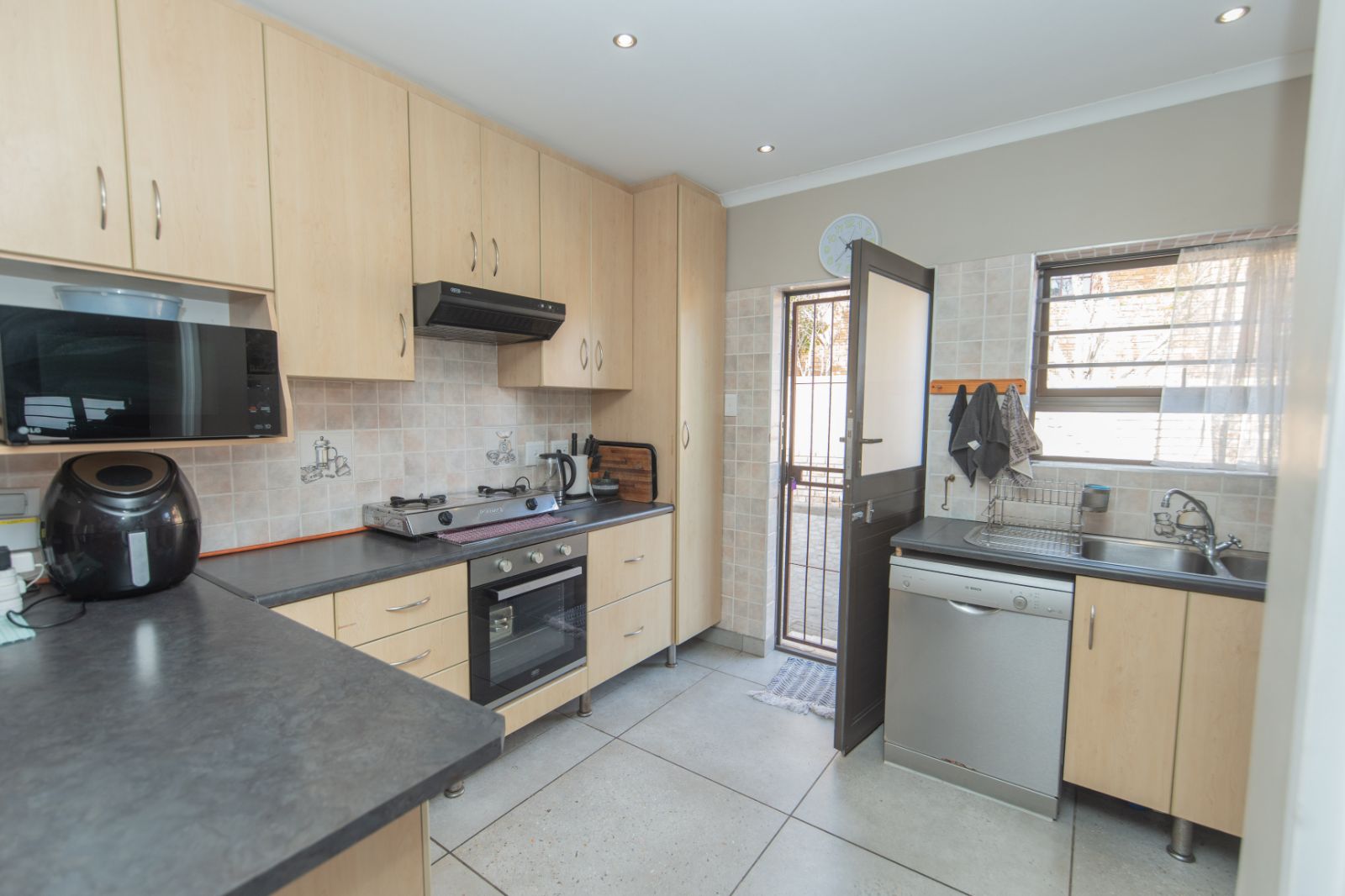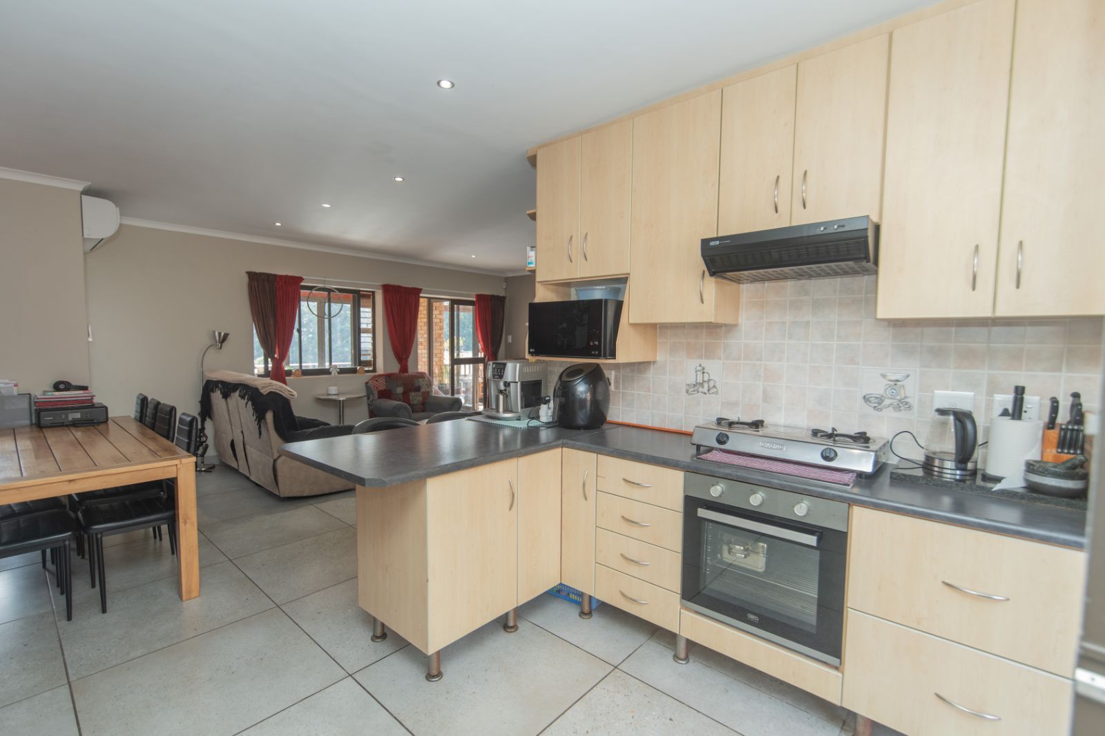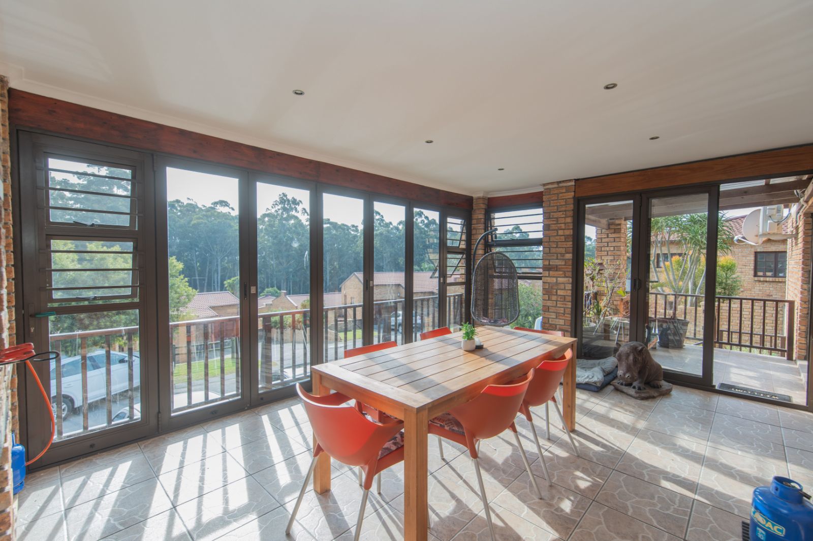 Fully tiled entertainment area with built-in braai, overlooking the lush greenbelt — perfect for weekend relaxation