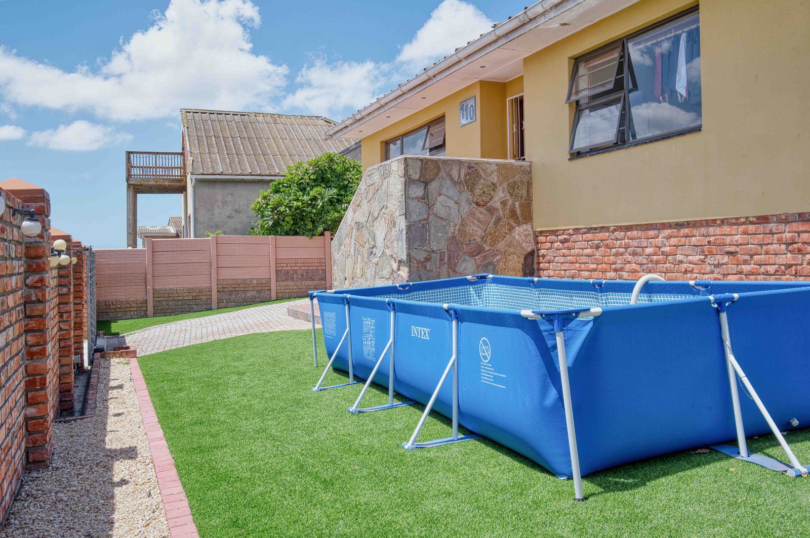 Are you looking for style and pizzazz? Well this is just the home for you. Upon entering this yard , you are immediately mesmerized by the ambiance that greets you by the gate. This yard is so beautiful , and the swimming pool gives it that extra touch. The pool is above ground. The entrance of the yard has a remote controlled gate , so it is not easy for anyone just to walk in.