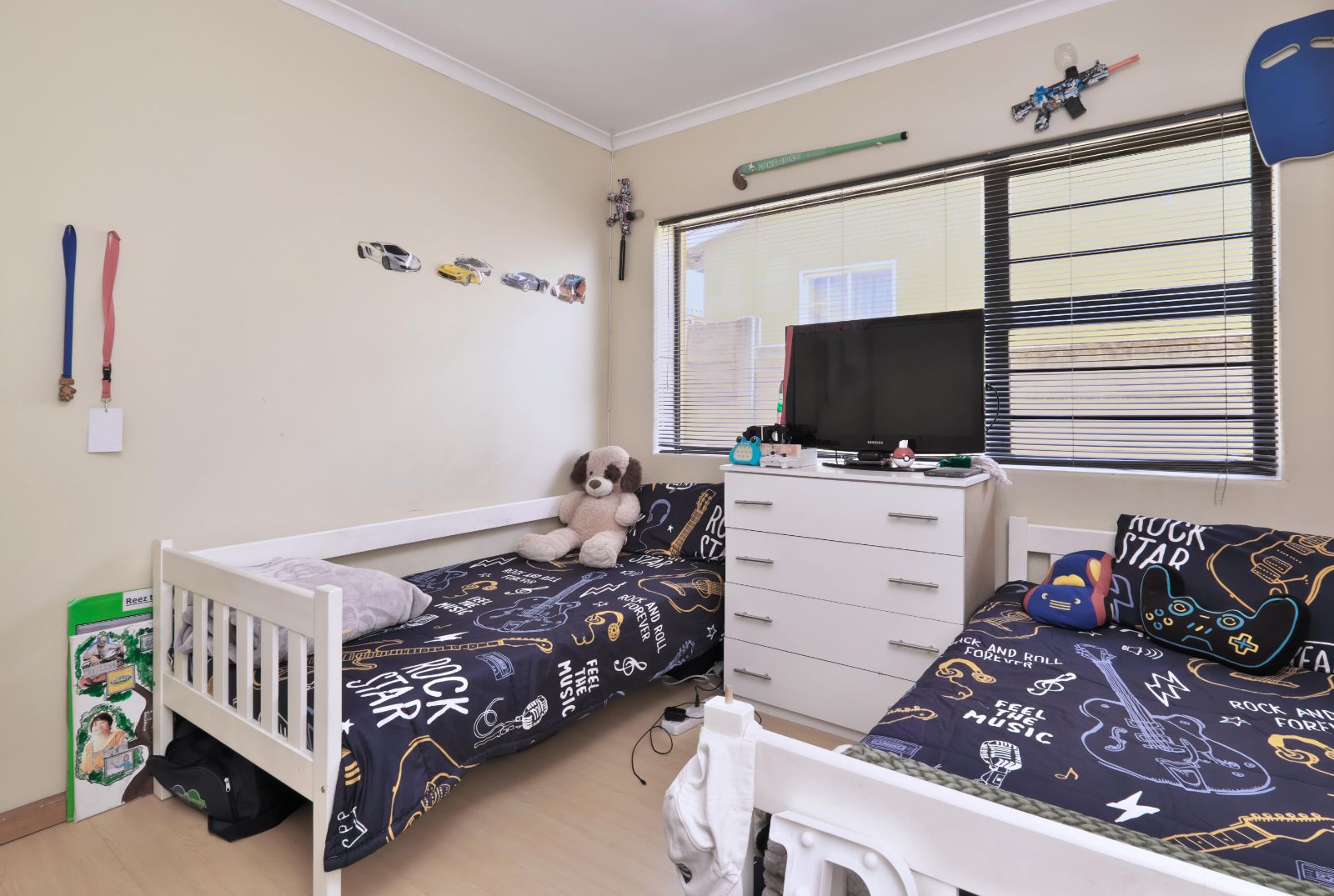 All the windows has blinds on and curtain rails . Also if need be.