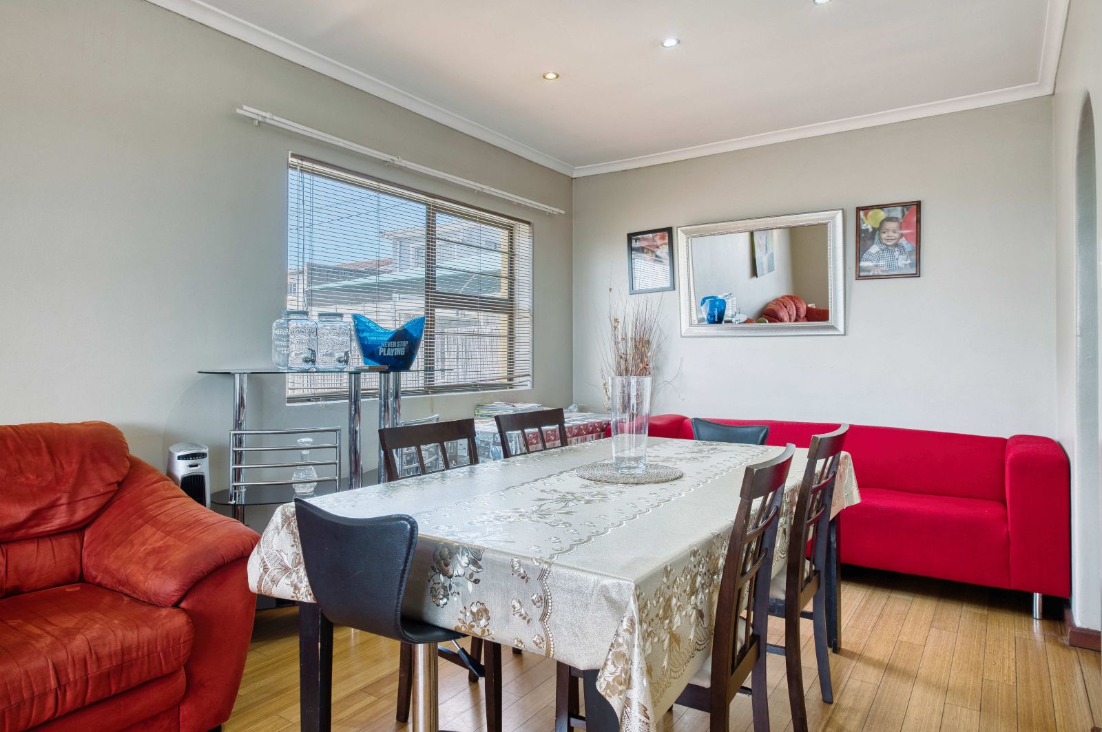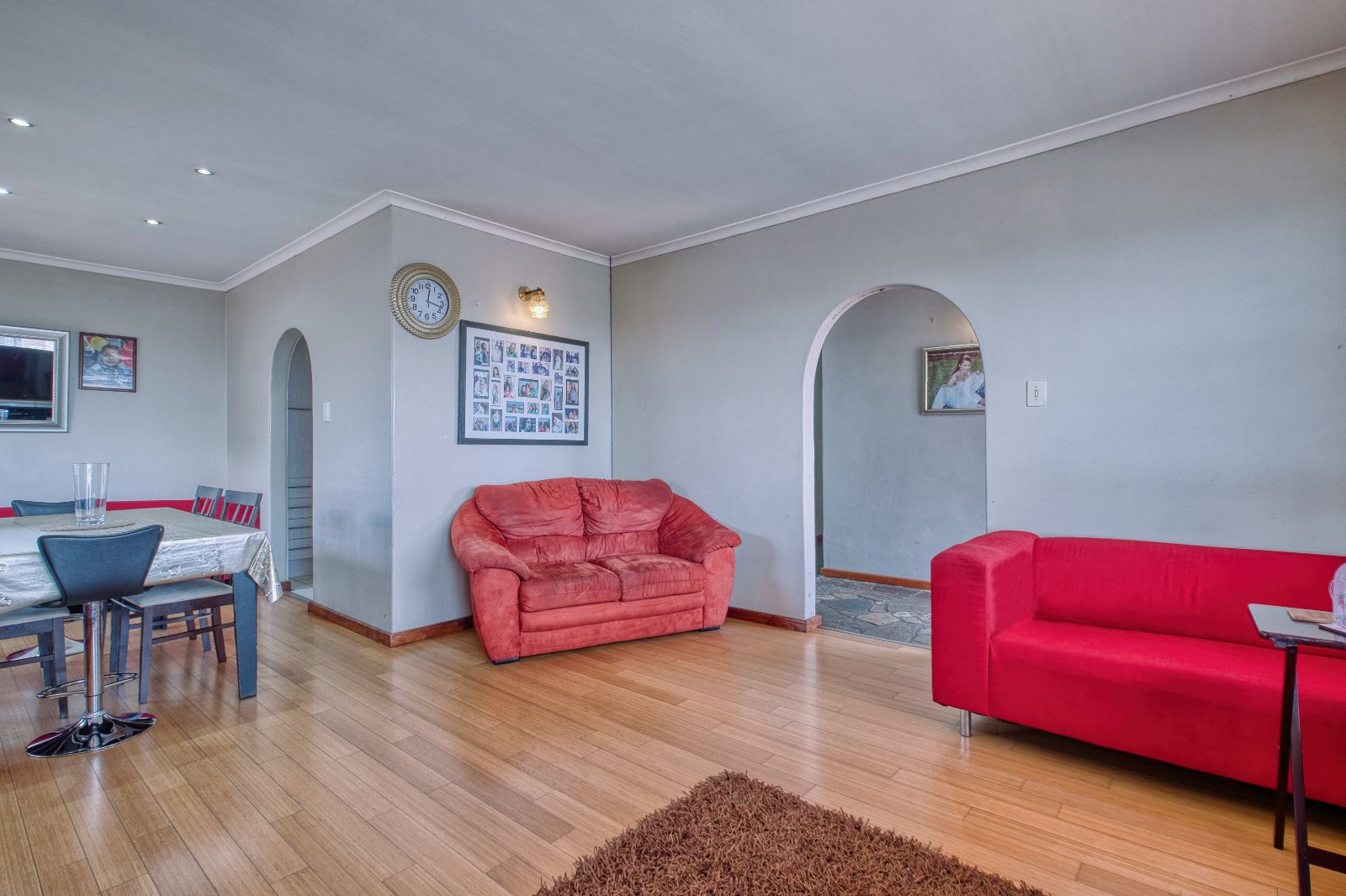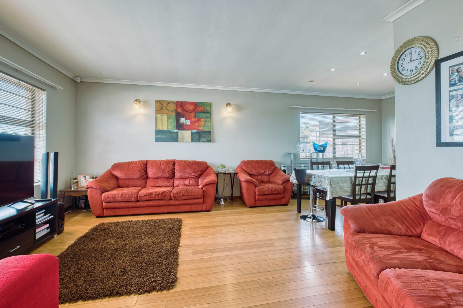 You can enter the lounge from the entrance hall and you will find a stunning wooden floor lounge. There is an open plan dinning room which has downlights , just to add that final touch of beauty. The walls of these areas are so clean and neat, you do not even have to paint it when you move in. It is move in ready.