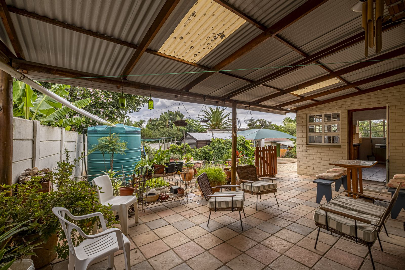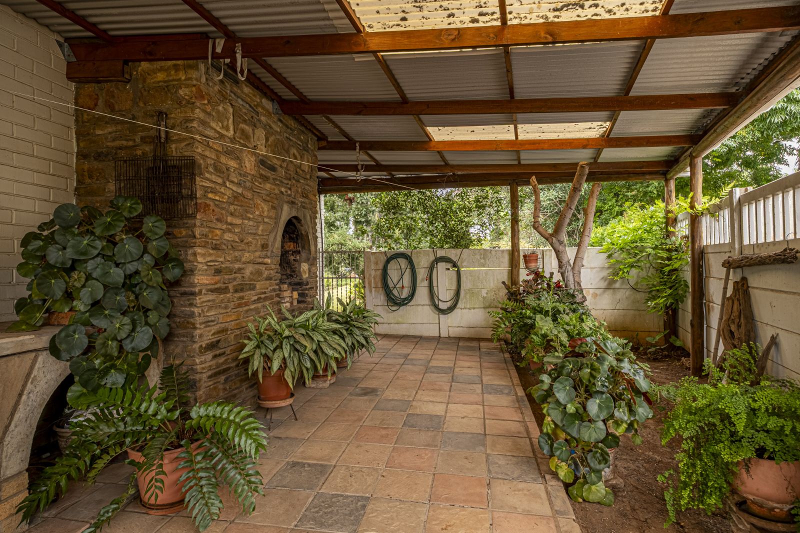 Outside, the home continues to impress. A covered braai area invites year-round gatherings, while the lush garden with mature trees and colourful blooms offers a peaceful escape.