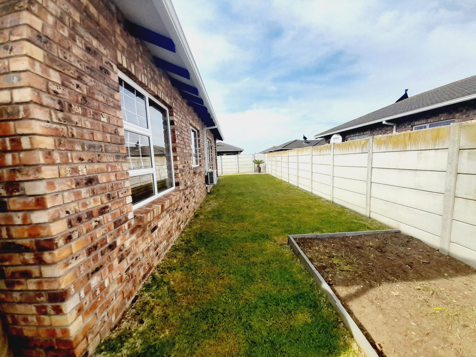 Inside, you’ll find a spacious open-plan kitchen and living area, complete with tiled floors, laminated bedroom flooring, and fitted blinds in the living and bedrooms. The enclosed braai area is perfect for entertaining, while the full lock-up garage with a rubber mat floor provides both convenience and practicality.