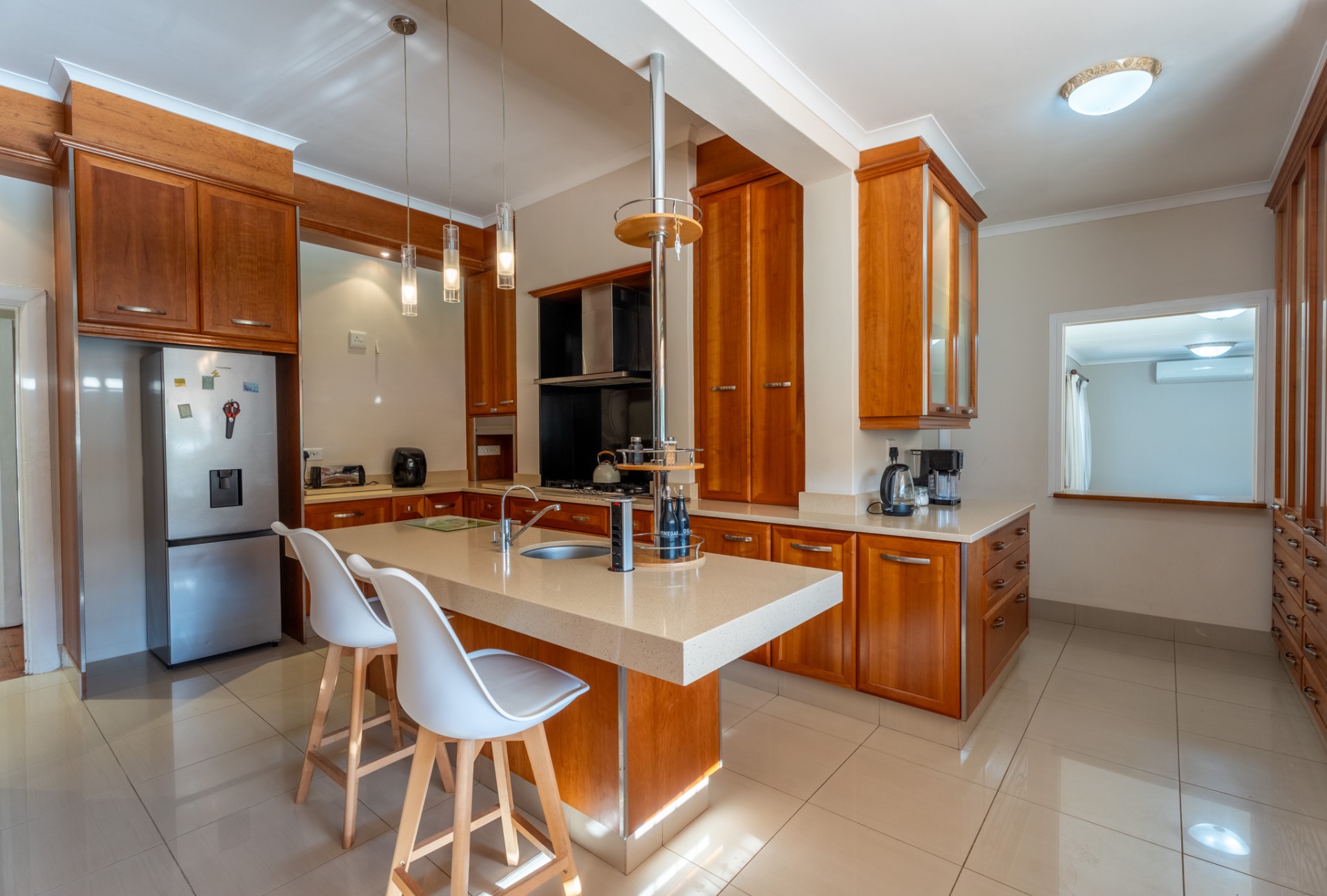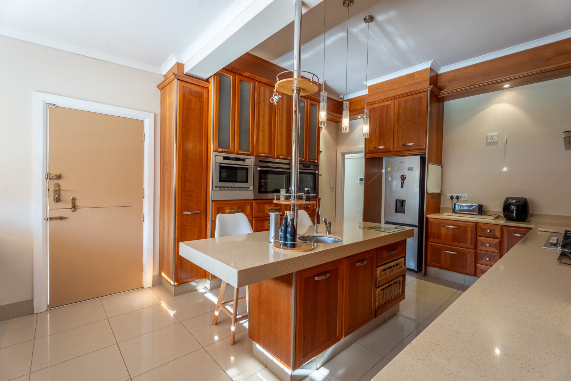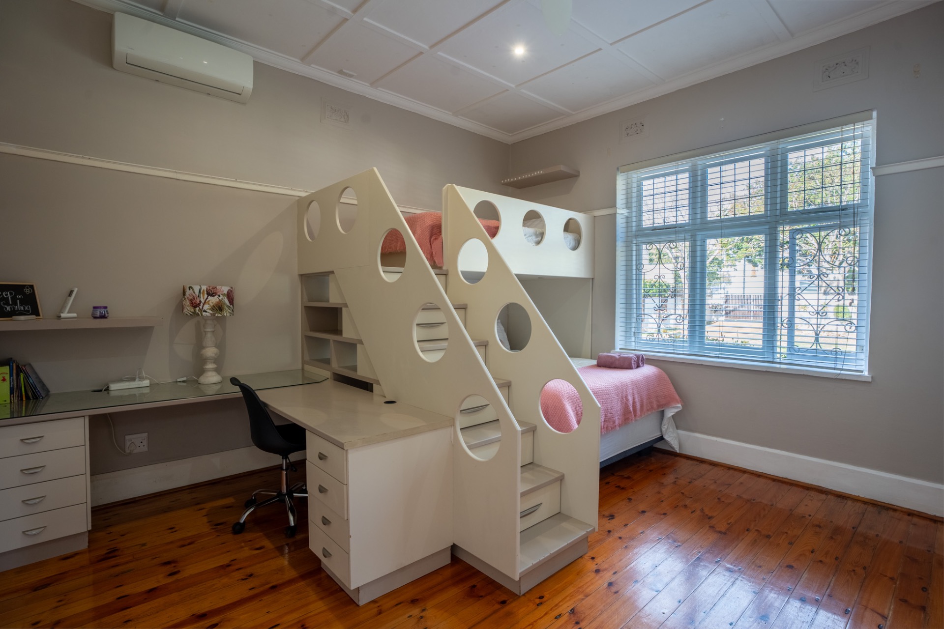 Safe and secure, with burglar bars, an alarm system, front and back beams as well as an electric fence. You will have peace of mind 24/7.