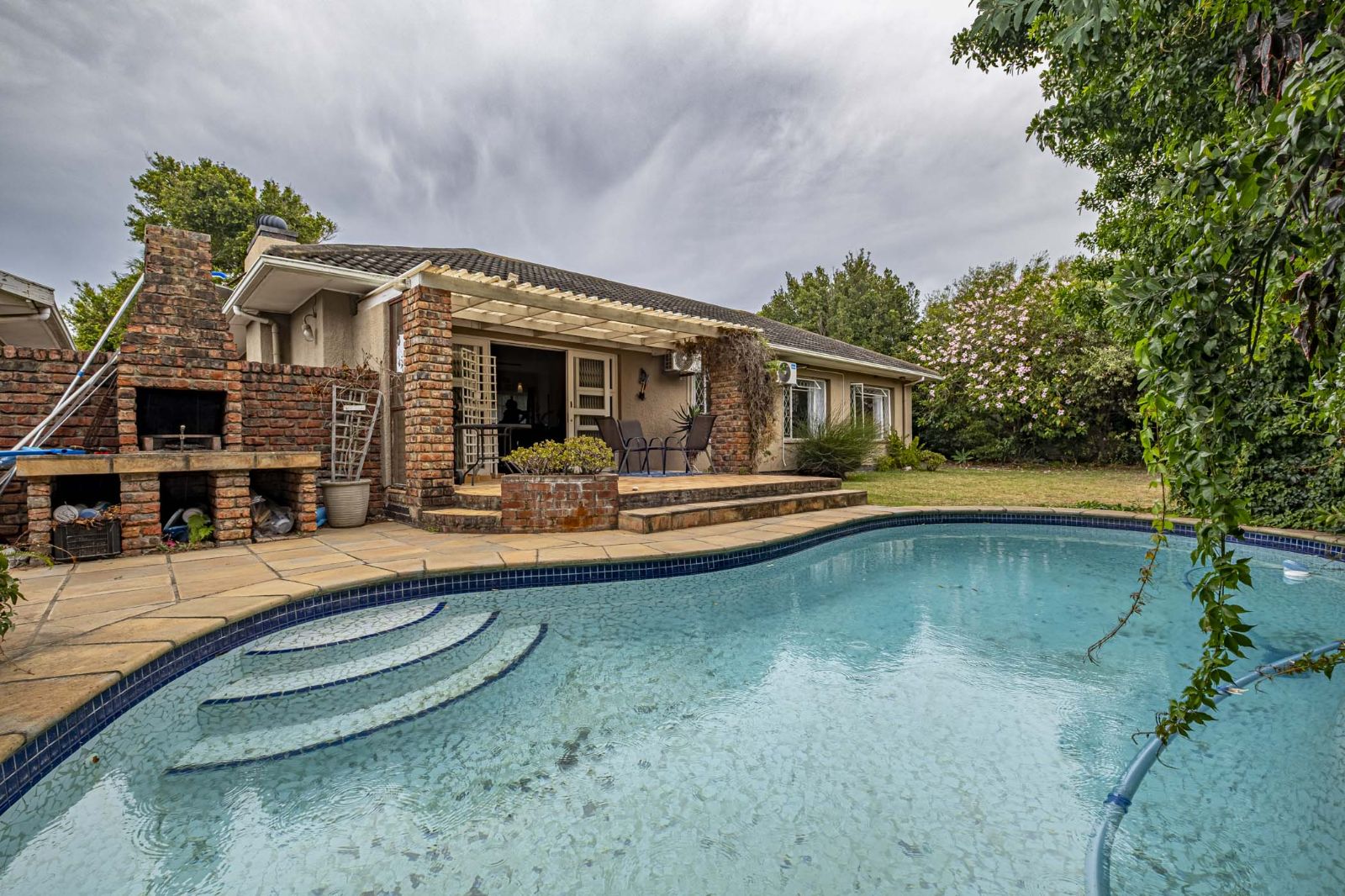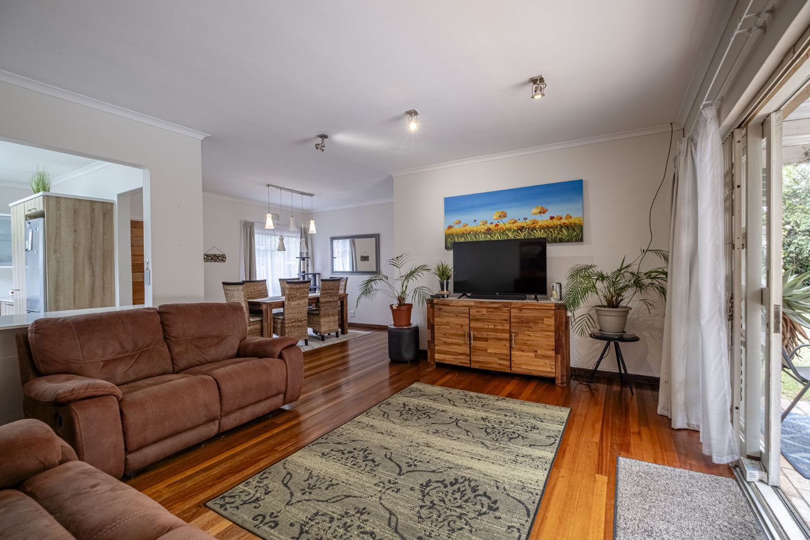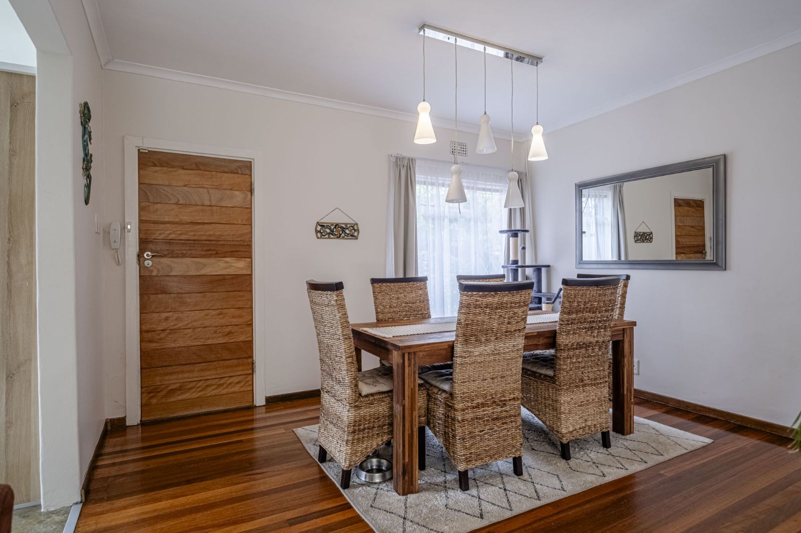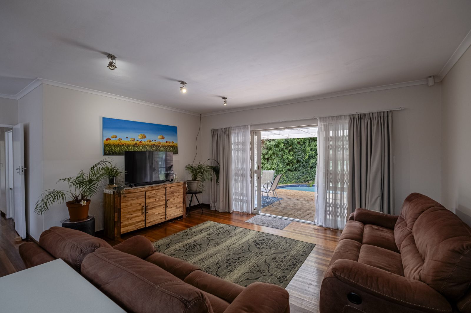 The kitchen offers built-in cupboards and a breakfast nook, creating a warm and functional space for everyday family living. The living areas consist of a dining room and lounge, with the lounge opening directly onto the sparkling swimming pool and private backyard — ideal for children to play and for relaxed weekend braais with family and friends.