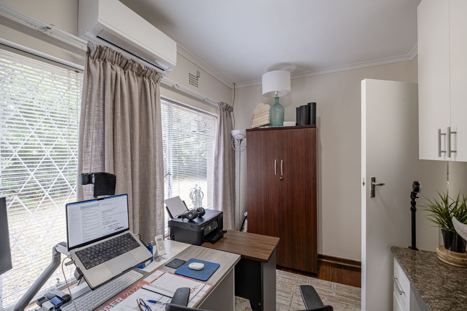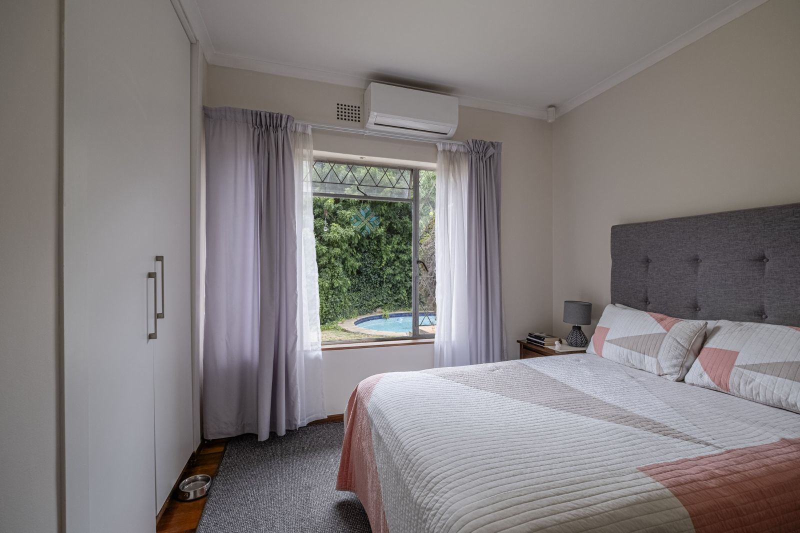 The property further includes a flatlet, also air-conditioned, providing ideal accommodation for extended family or additional income, as well as a storeroom for added convenience. Gorgeous wooden floors throughout the home add warmth and timeless character.