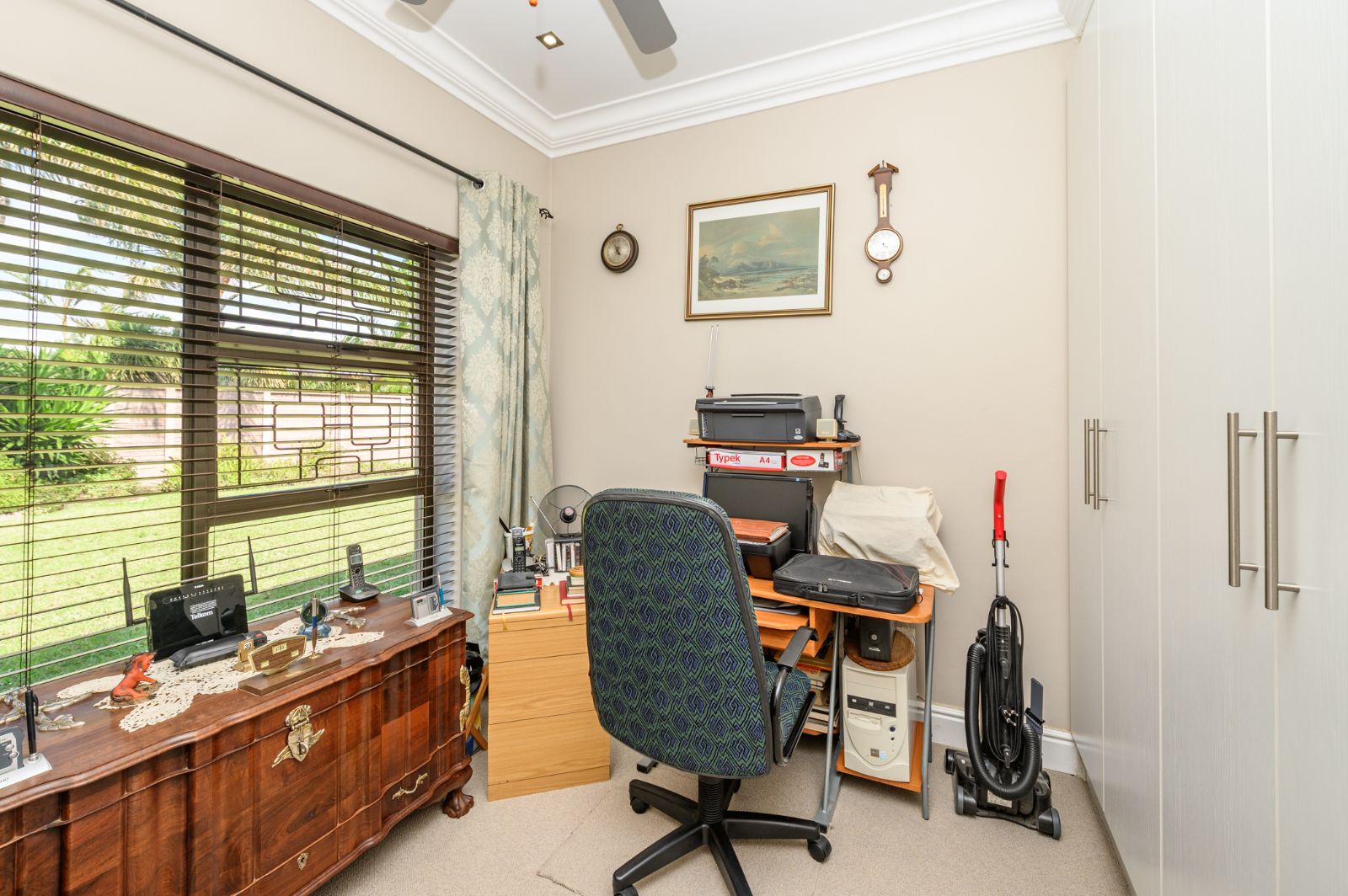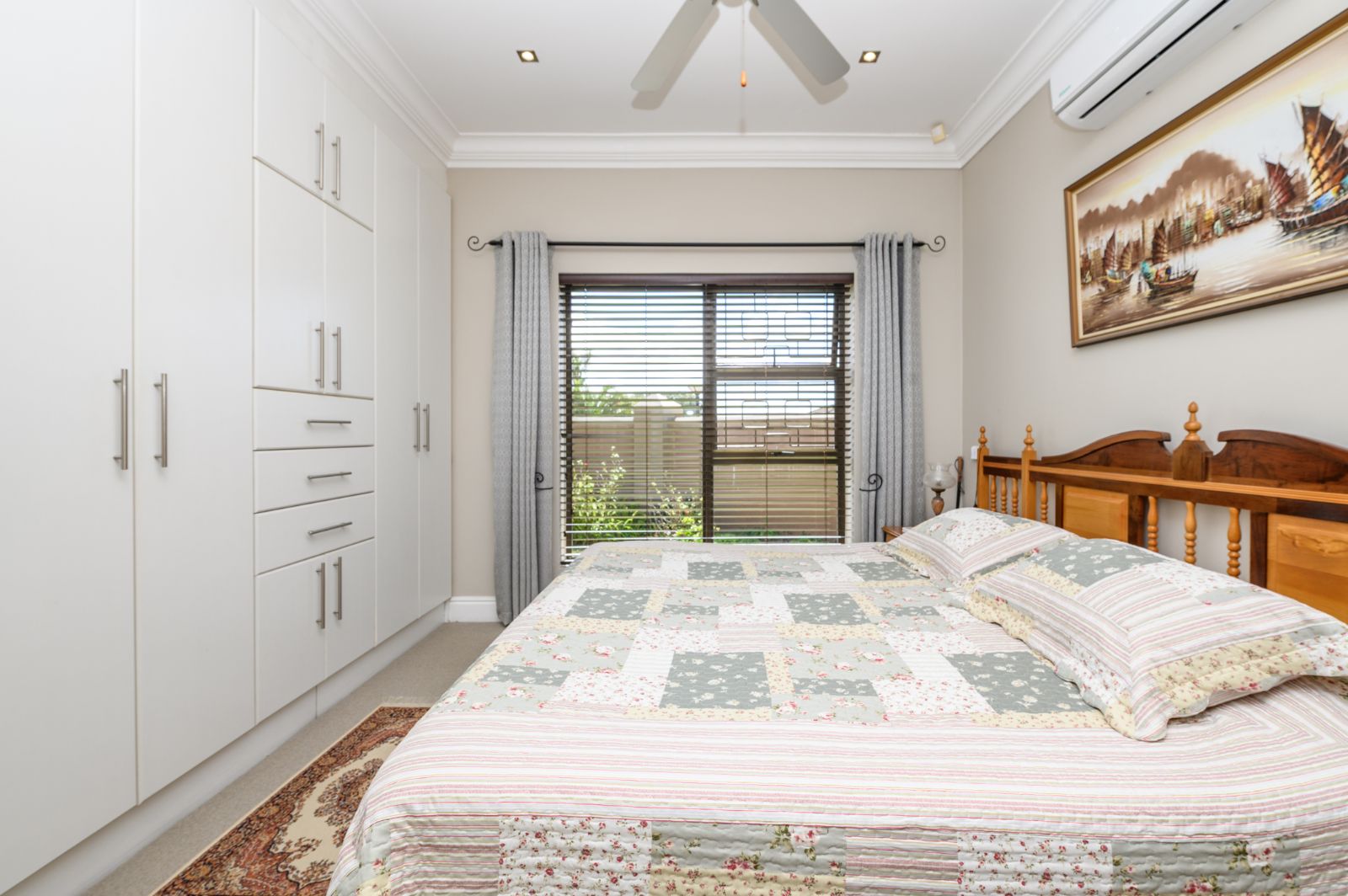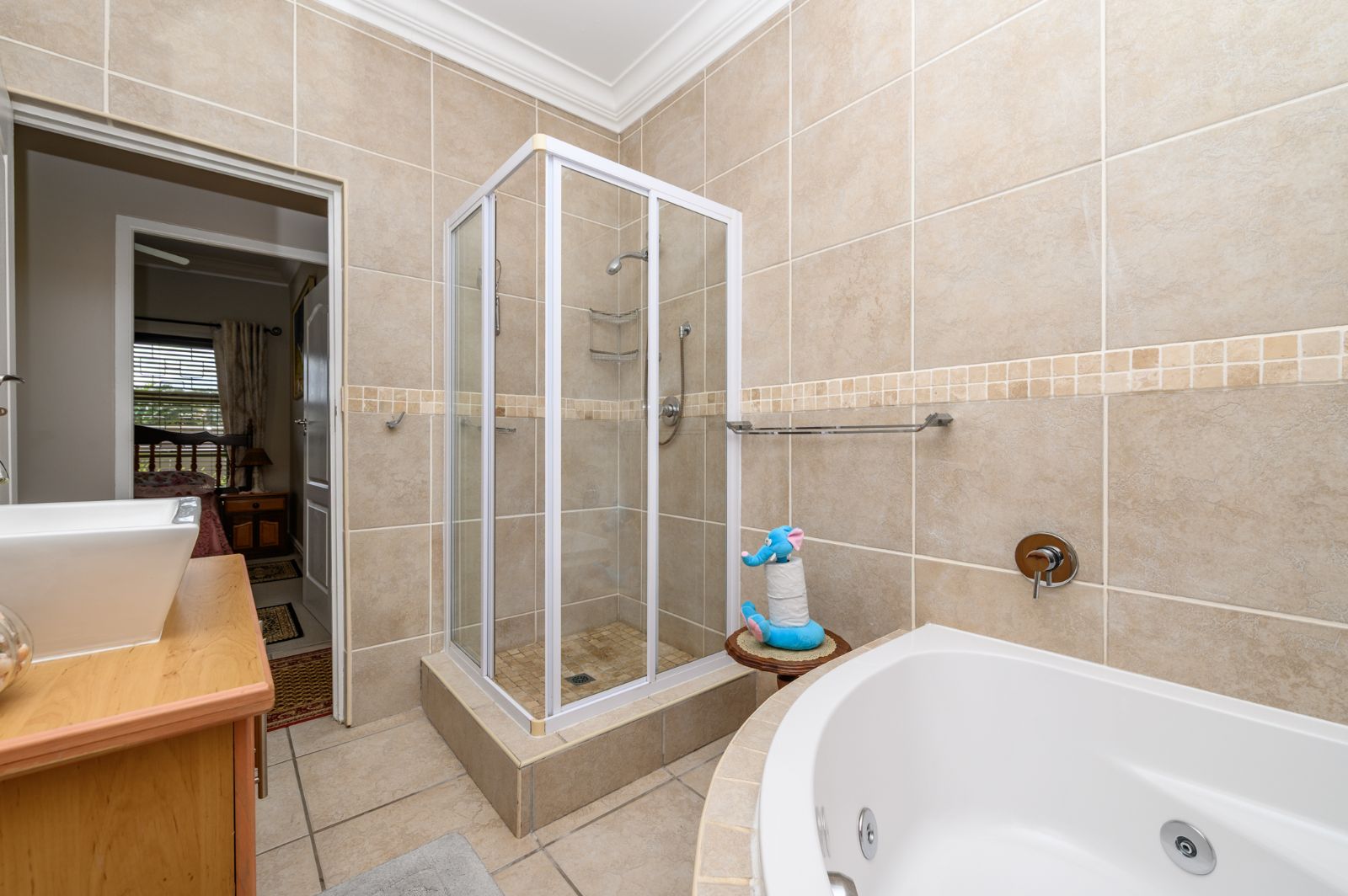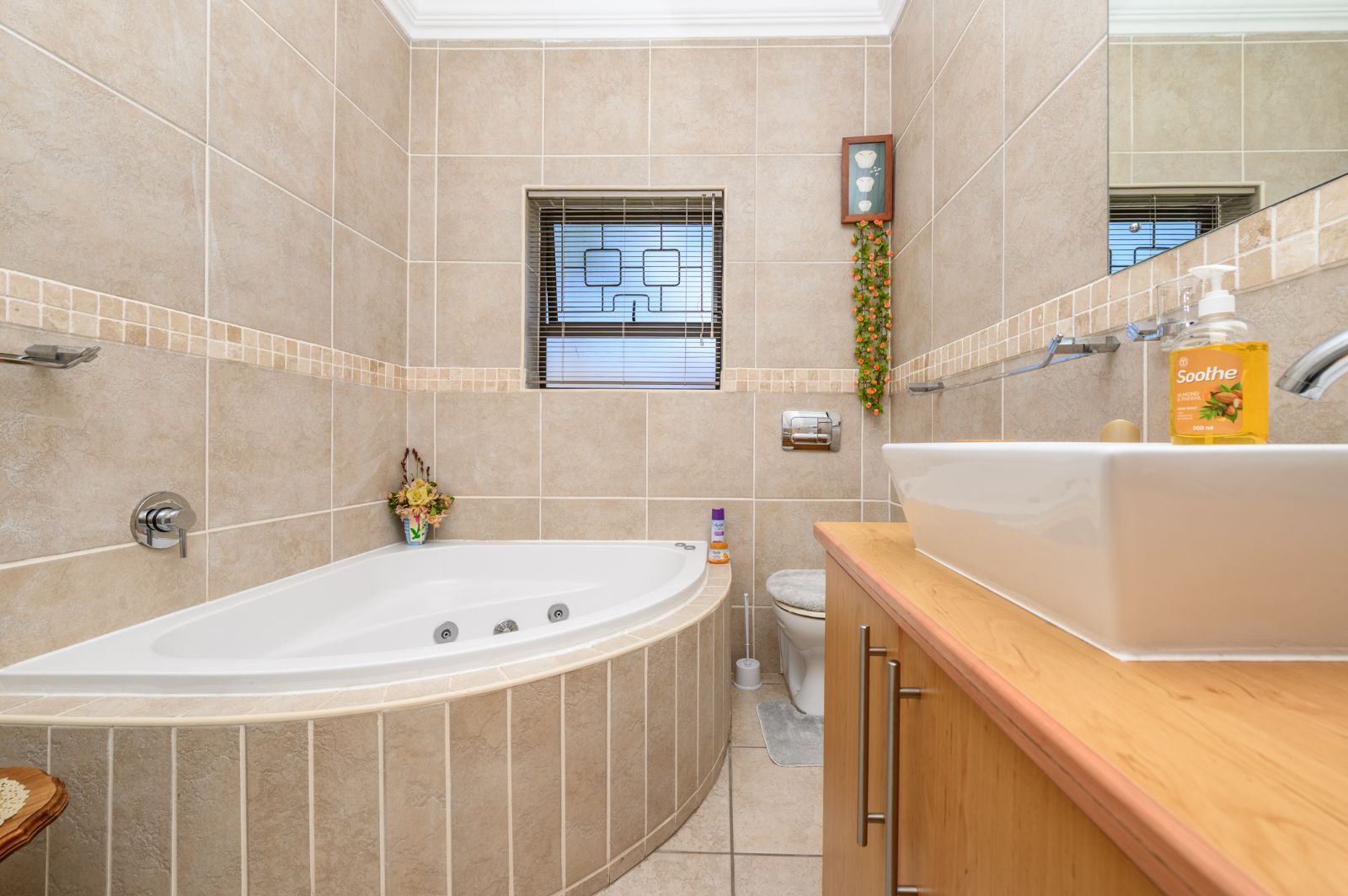 This home features three generously sized bedrooms, all fitted with plush carpets and built-in cupboards. The main bedroom and lounge include air conditioning for year-round comfort. There are two full bathrooms, both designed with luxury in mind, including a jet bath and a separate shower for a spa-like experience.