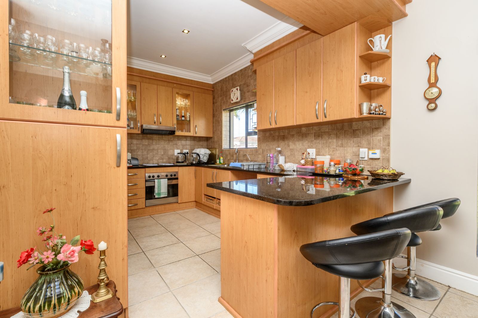 The modern kitchen boasts sleek granite countertops, ample fitted cupboards, and a contemporary layout, making it ideal for cooking enthusiasts. A nearly new indoor braai area provides the perfect space for entertaining in any season.