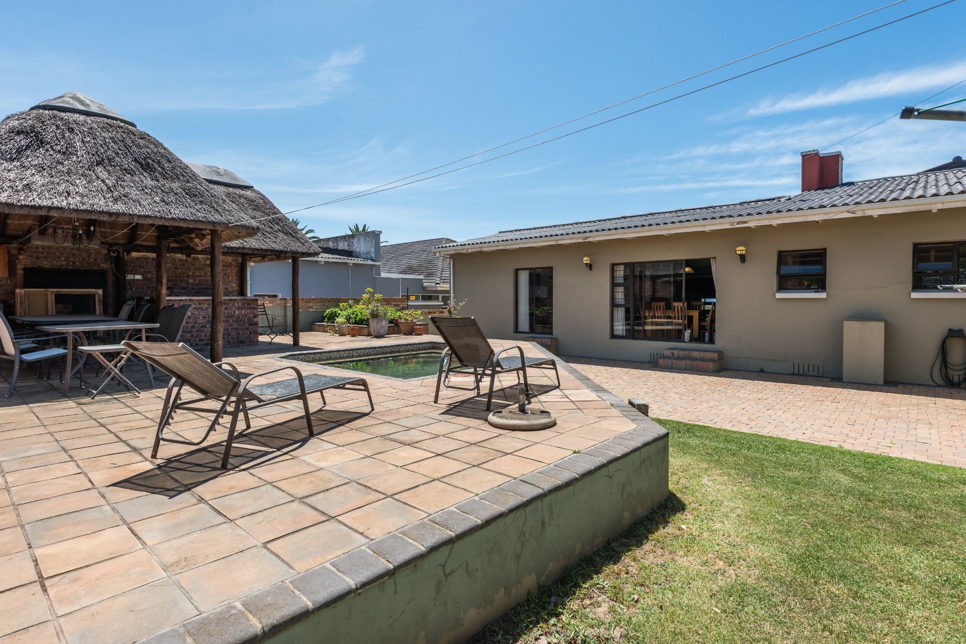 A one-bedroom flat with its own entrance, a thatch lapa with a built in braai at the pool side, or if you prefer a sea view, you can entertain at the built in braai on the front patio off the formal lounge. A double tandem garage on remote and a separate storeroom complete this lovely family home.