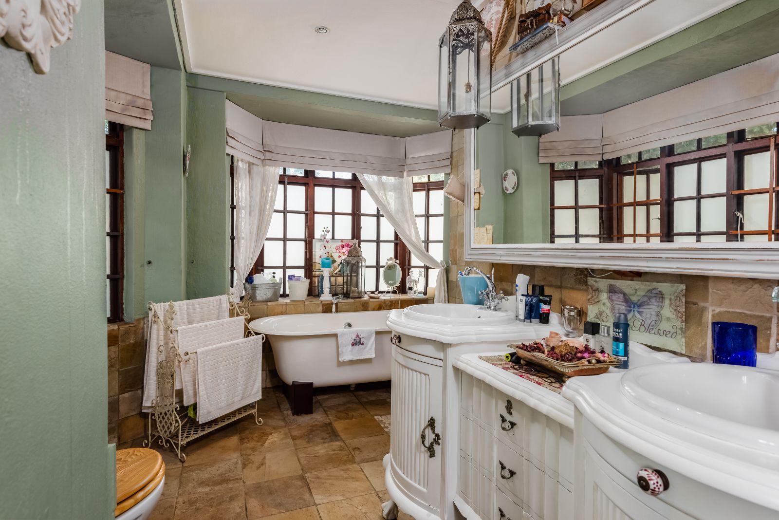 The gourmet kitchen boasts granite tops, a gas stove, separate built-in griller and deep fryer, plus a scullery and laundry for convenience. Perfect for entertaining, the dining room opens through French doors onto a covered patio with built-in braai, while the lounge and TV room each have working fireplaces for cosy evenings.