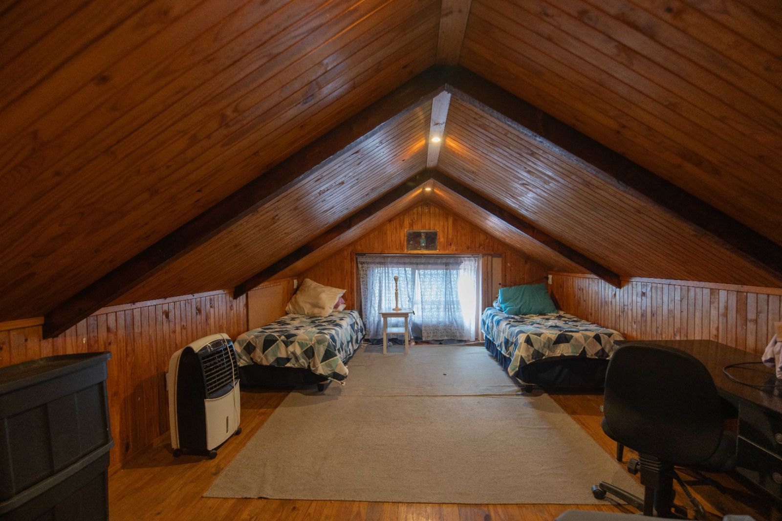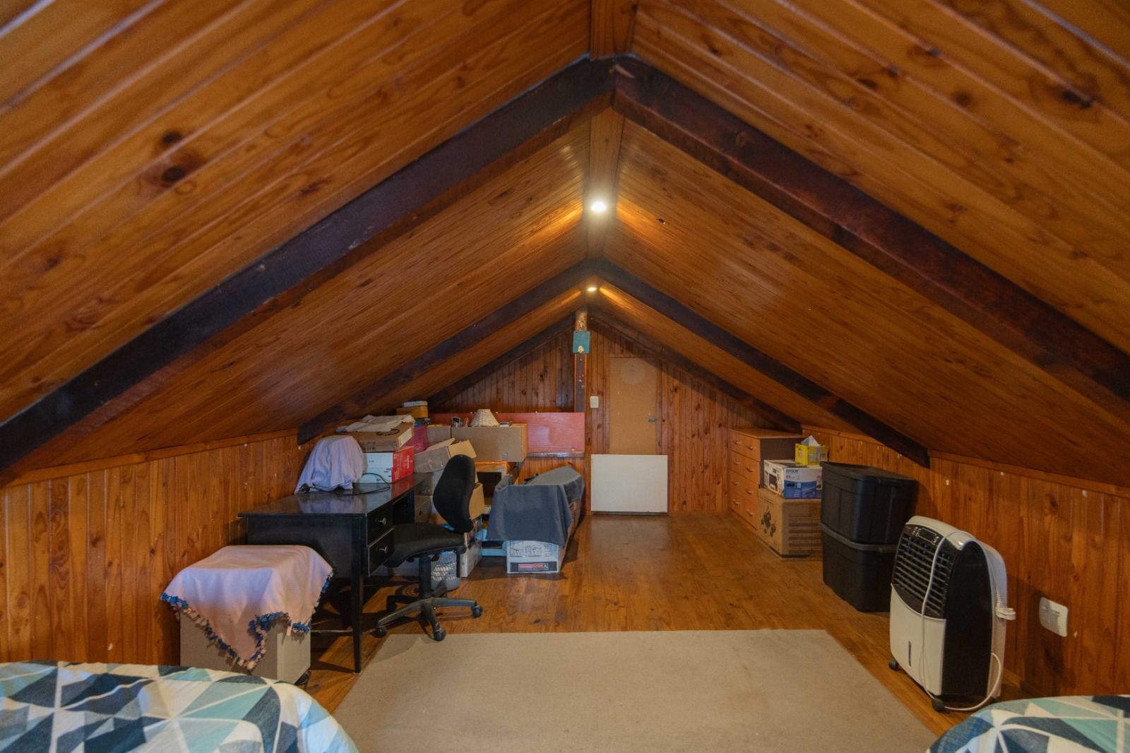 The home features two spacious bedrooms downstairs and a large loft upstairs, currently utilized as a third bedroom, offering flexible living arrangements. The layout includes a full family bathroom, a guest toilet, as well as an additional outside toilet for added convenience.
