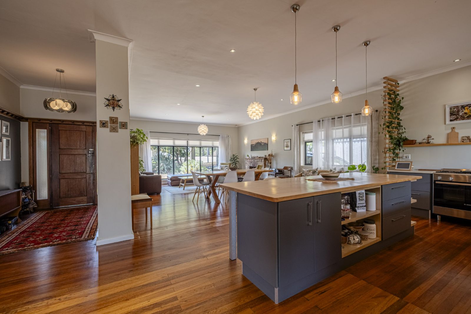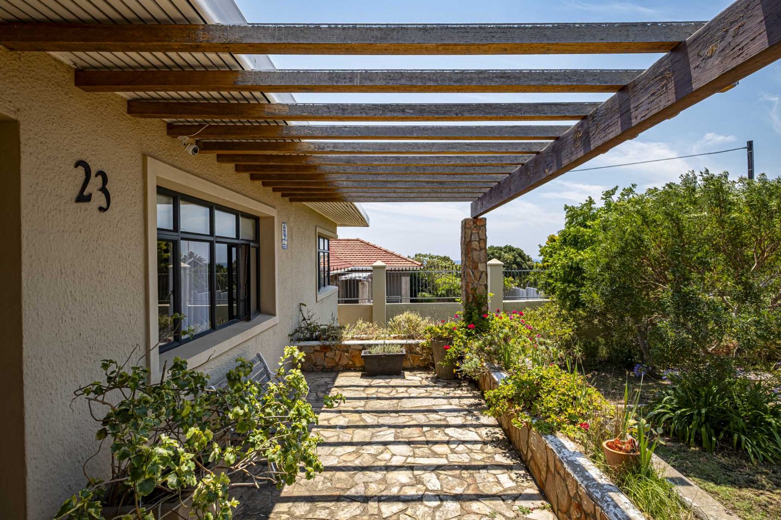This warm and attractive home in Parsons Hill is perfectly positioned close to Collegiate Girls High and Junior Schools, as well as Greenacres Hospital and Greenacres Shopping Centre. From the inviting entrance, you’re greeted by solid wooden floors and charcoal aluminium windows with laminated glass throughout, giving the home a modern, cohesive feel. The open-plan living areas flow seamlessly, with a cosy fireplace in the lounge adding real charm. The kitchen is a beauty too, featuring a centre island with a maple wood top, a freestanding oven and gas hob, and stacker windows that open to the entertainment area for effortless indoor-outdoor living. There are three bedrooms, all with built-in cupboards and blinds, and a full bathroom with a contemporary freestanding tub and a frameless shower, plus a guest toilet. The main bedroom includes sliding doors that lead to a deck, perfect for morning coffee. Step outside to an undercover deck overlooking an indigenous back garden with a fire pit for extra gatherings. Practical extras include a double carport, a single garage on remote, an outside room and toilet, fibre internet, an alarm, front and back garden beams, CCTV (not linked to the alarm), additional basement storage, and three rainwater tanks totalling 8,000 litres on a pump (not connected to the house). Well looked after and much loved, this immaculate home welcomes private viewings.