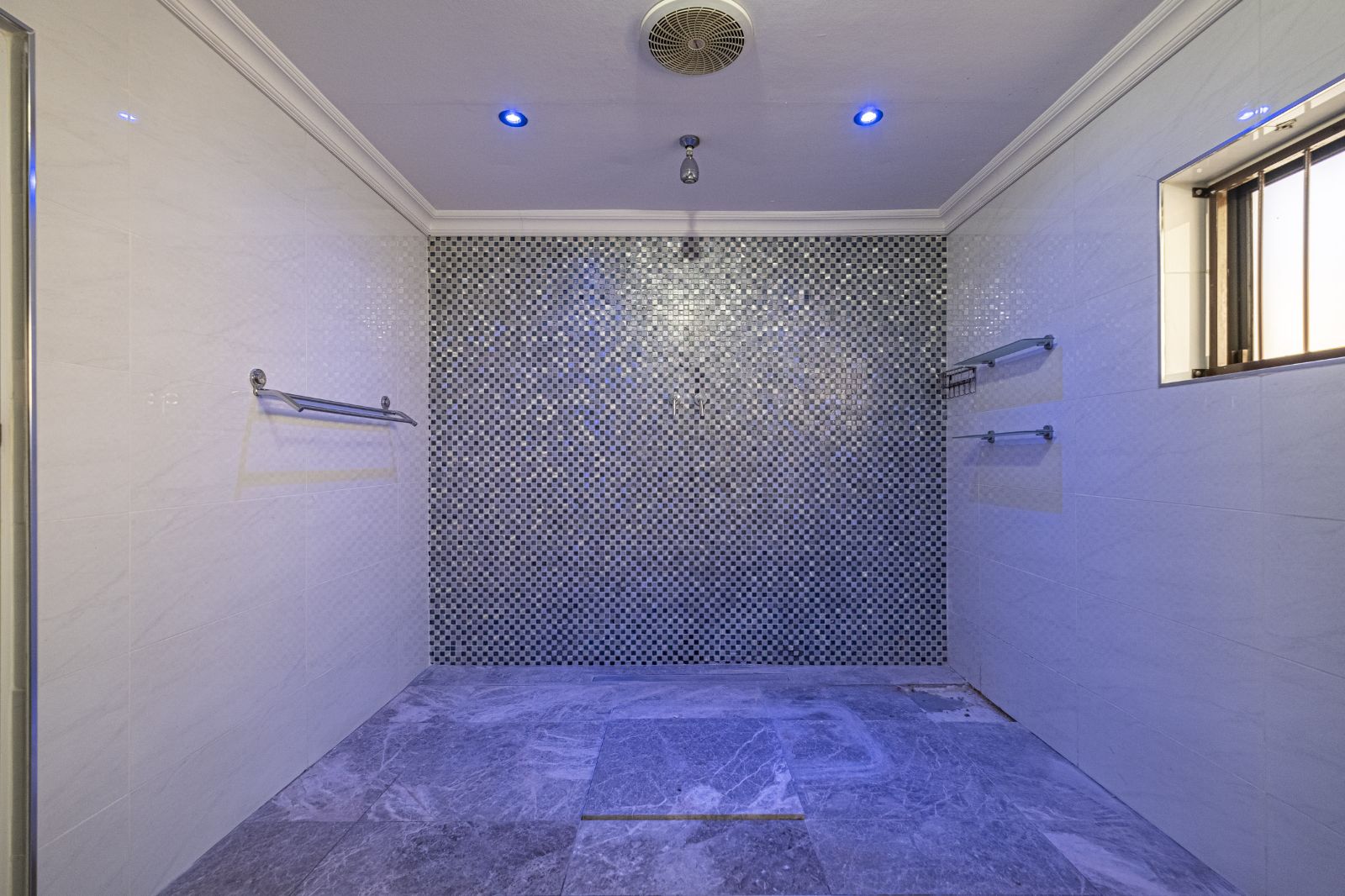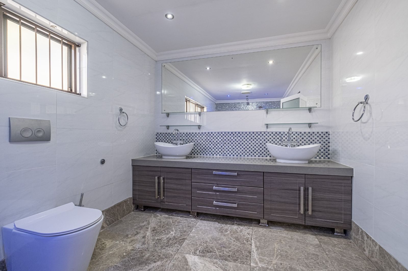 This beautiful home features four spacious bedrooms, with the main bedroom boasting a walk-in closet and a sleek en-suite bathroom with a luxurious shower and his-and-hers basins. The second bathroom is modern and well-designed. Three of the bedrooms have wall-to-wall carpets and built-in cupboards, providing warmth and ample storage.