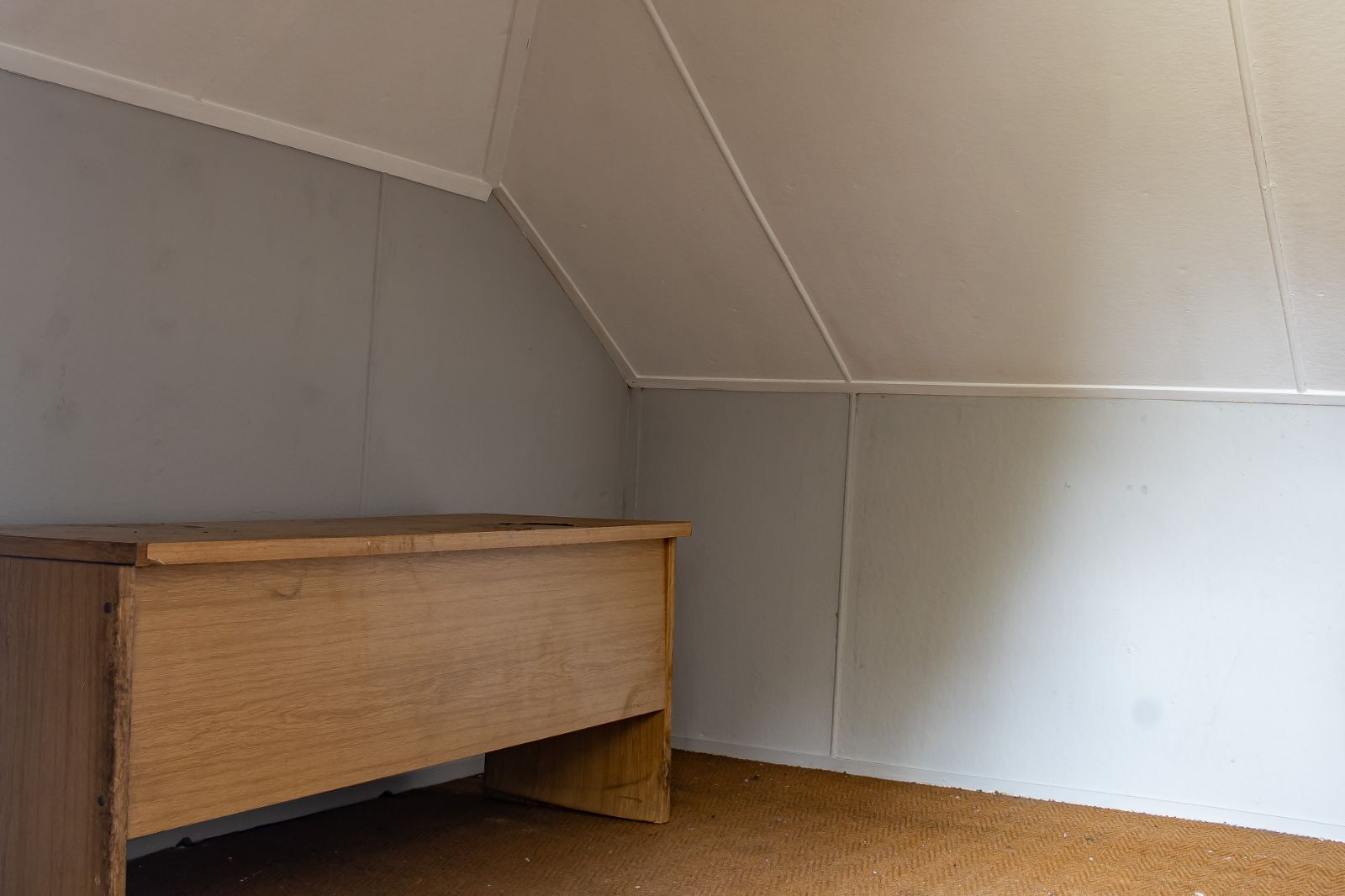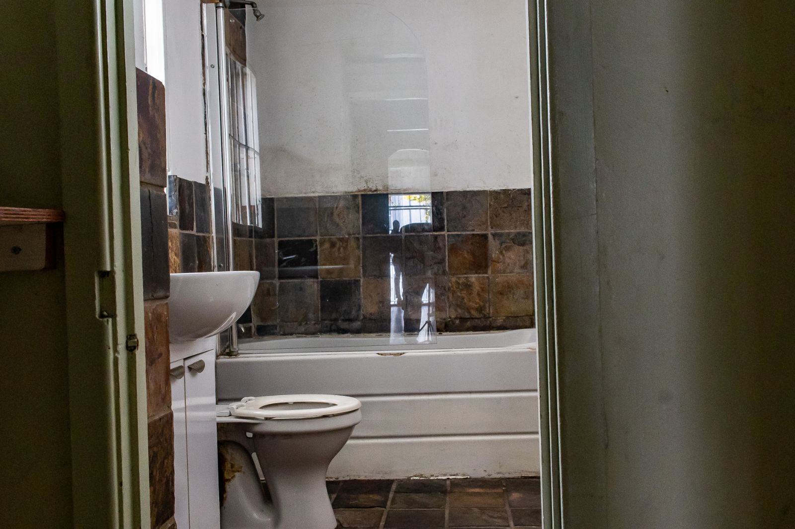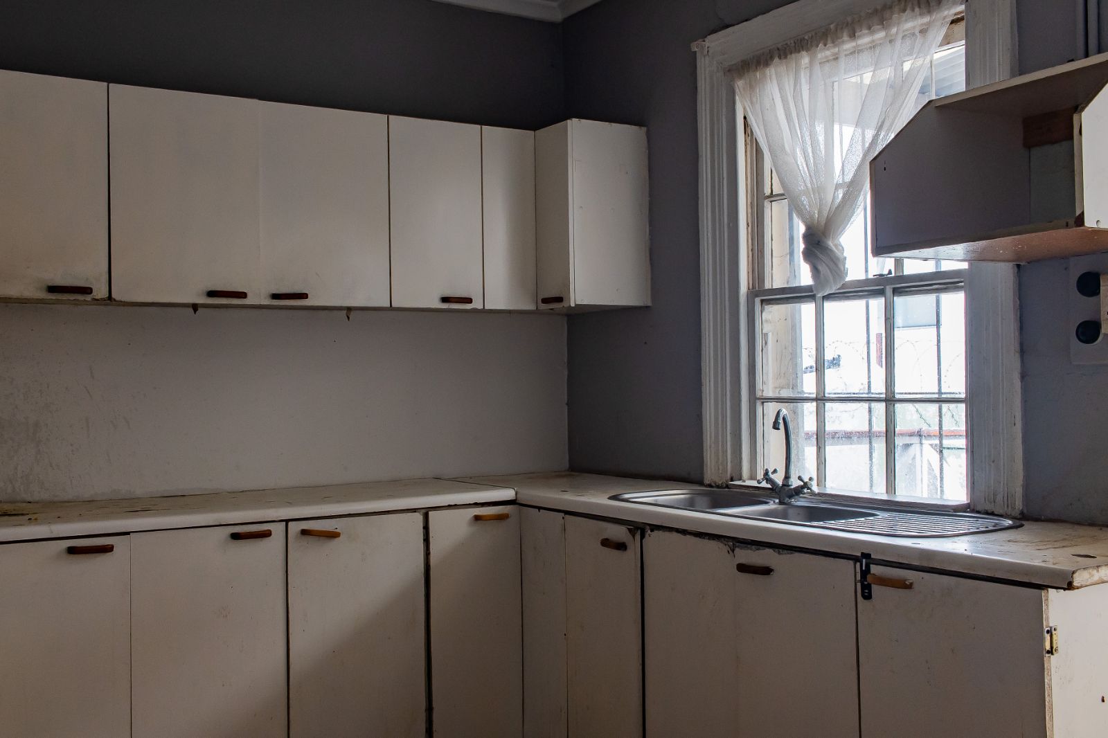 The property features three spacious bedrooms, a neat full bathroom, and a functional kitchen that flows into a comfortable living area. High ceilings and large windows enhance the sense of space and natural light throughout the home.