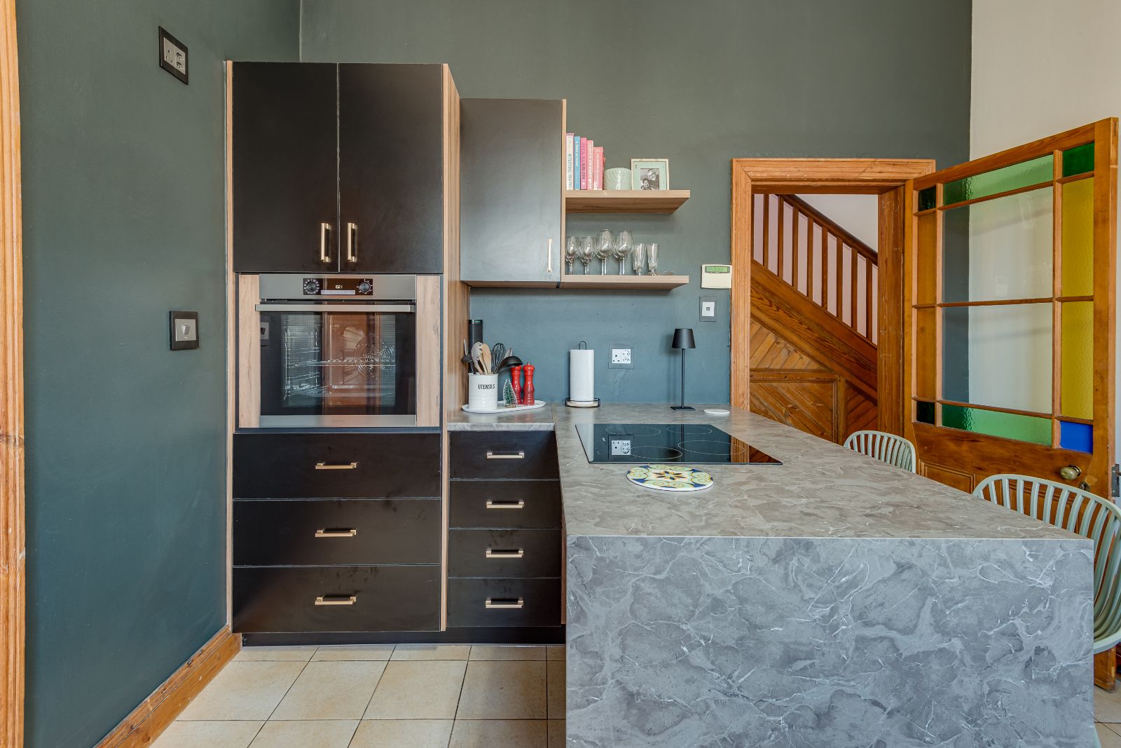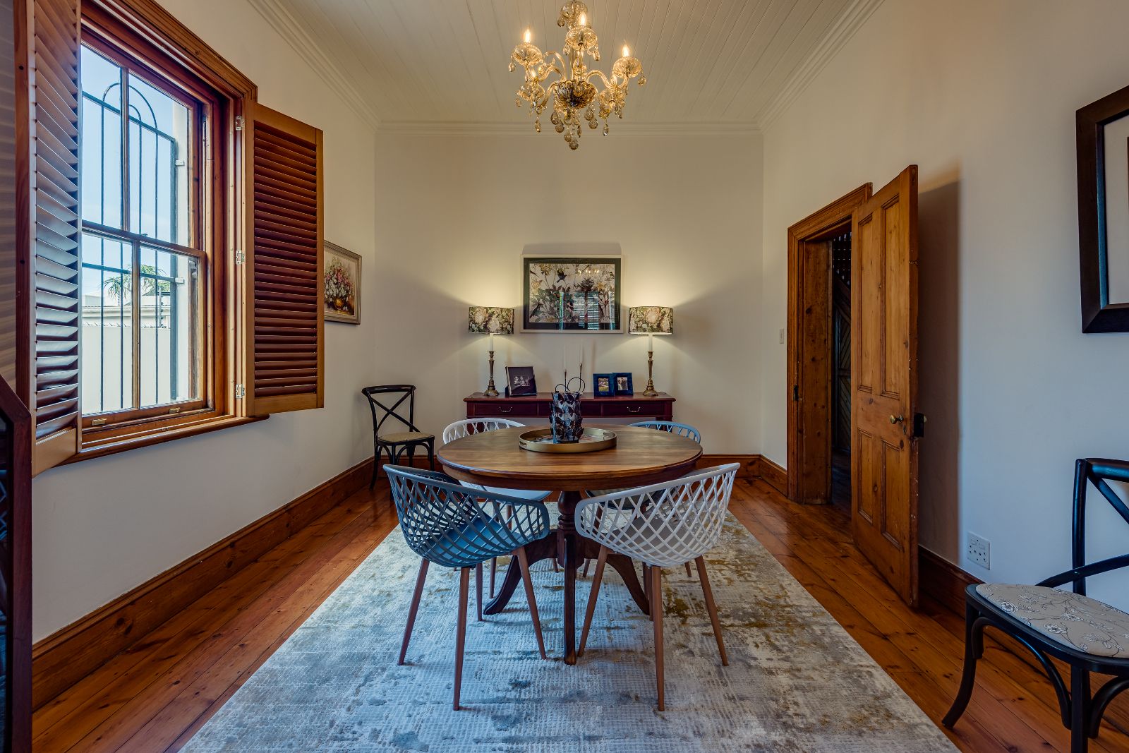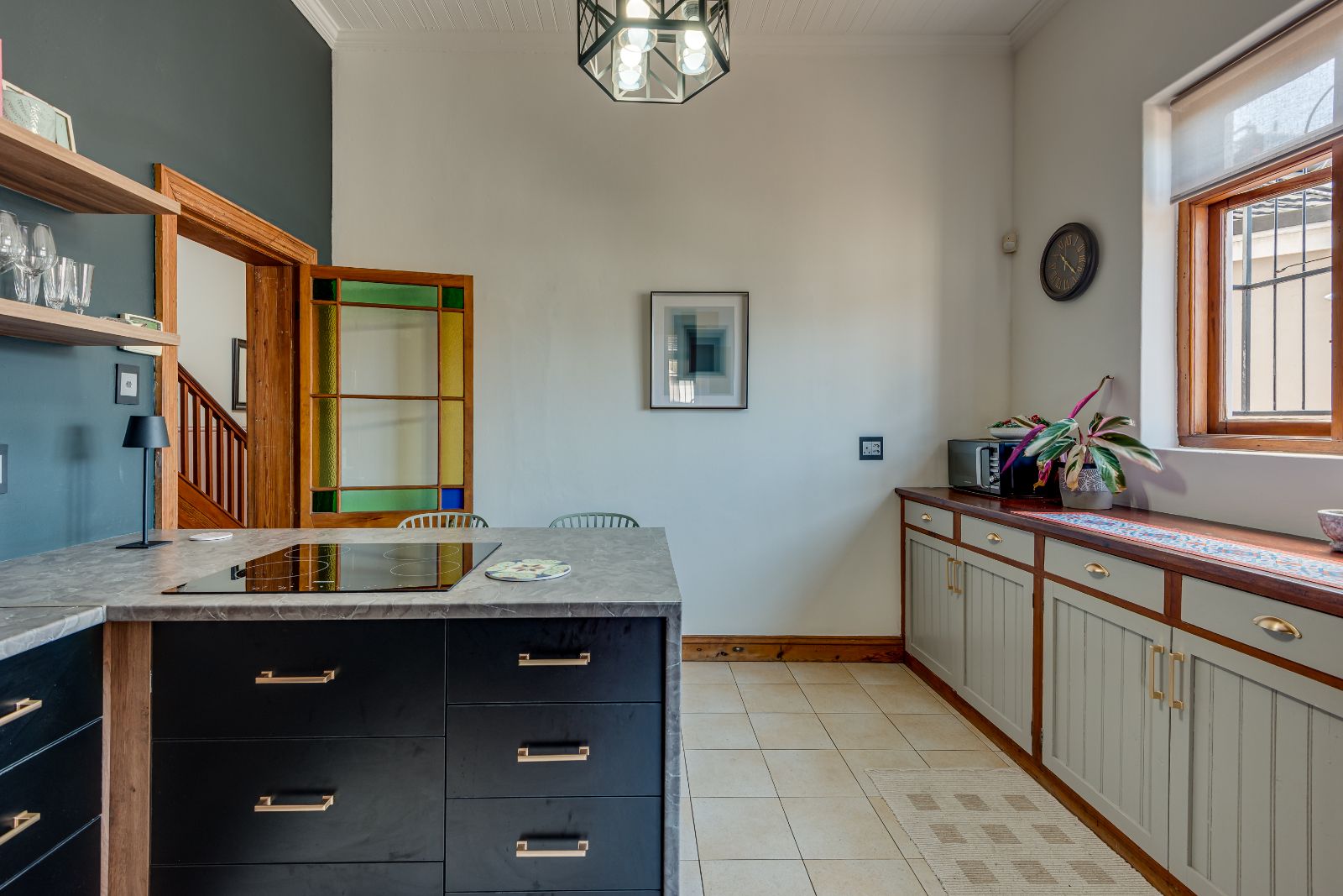 From the moment you enter, the home makes a lasting impression. A spacious entrance hall welcomes you in, where a striking archway frames the wooden staircase, setting the tone for the elegance found throughout. High ceilings, original wooden floors, and intricate stained-glass windows create a warm and inviting atmosphere.