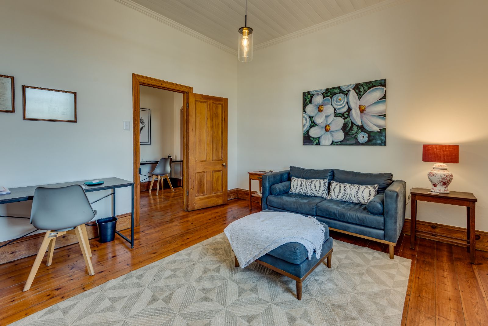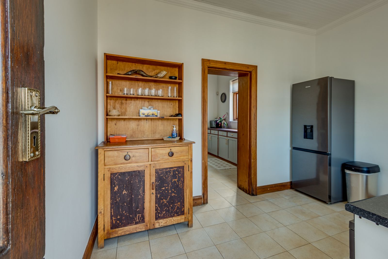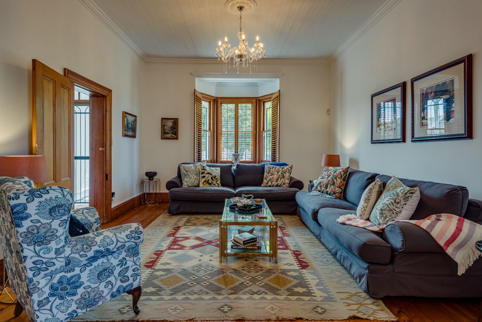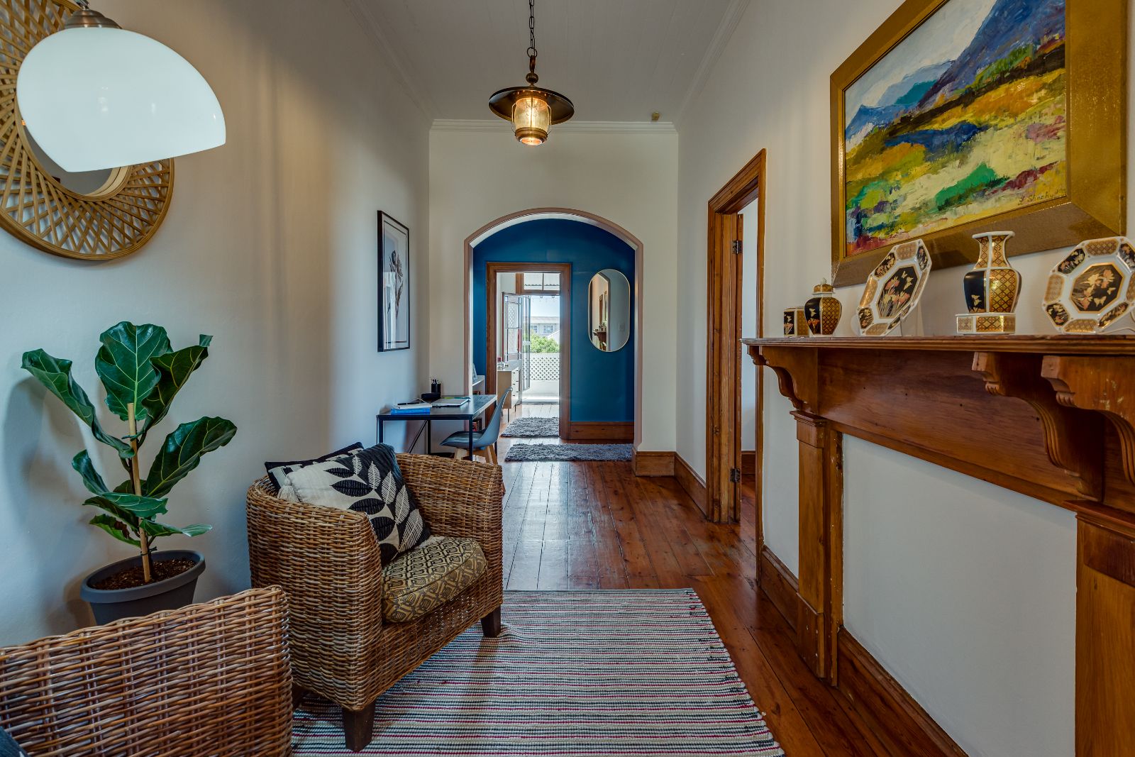 From the moment you enter, the home makes a lasting impression. A spacious entrance hall welcomes you in, where a striking archway frames the wooden staircase, setting the tone for the elegance found throughout. High ceilings, original wooden floors, and intricate stained-glass windows create a warm and inviting atmosphere.