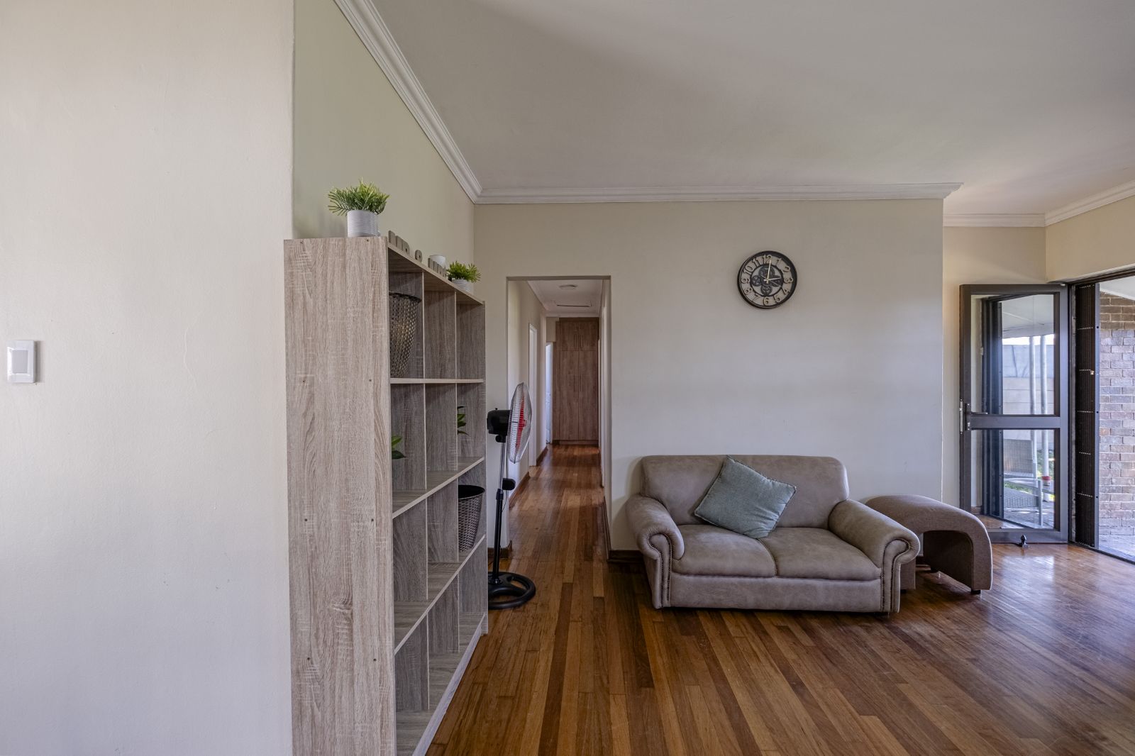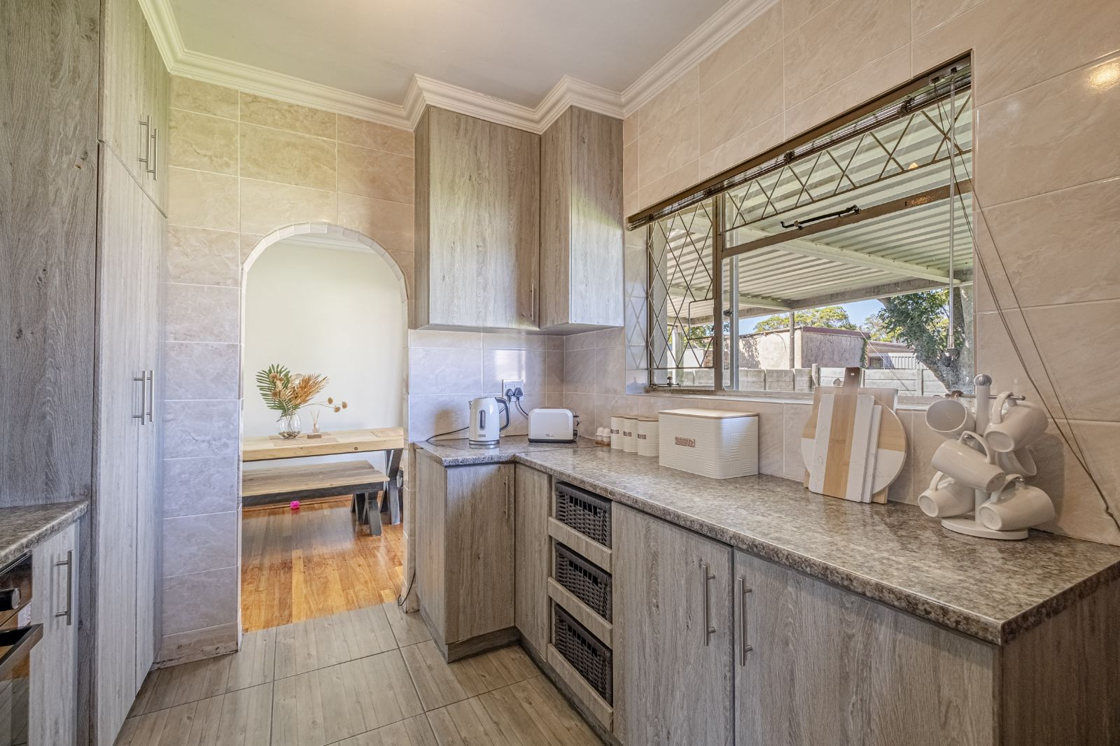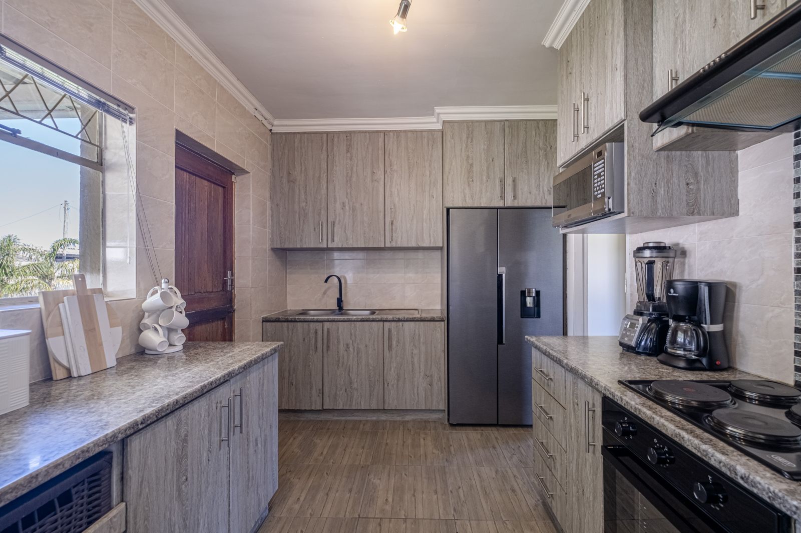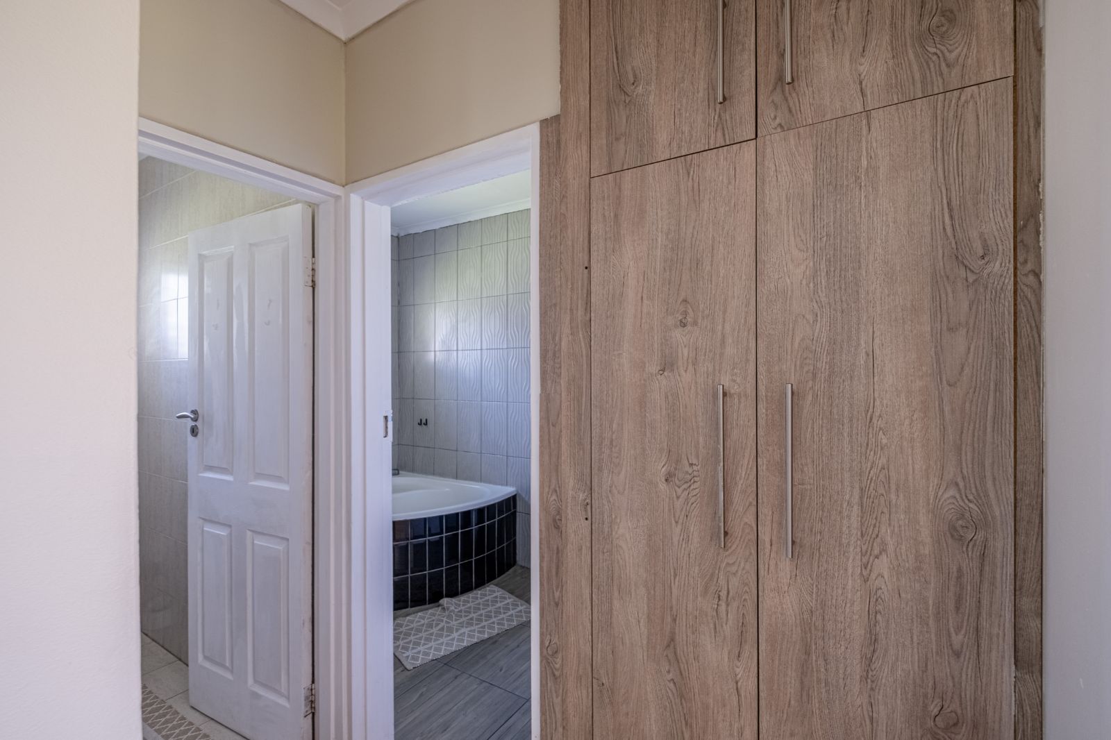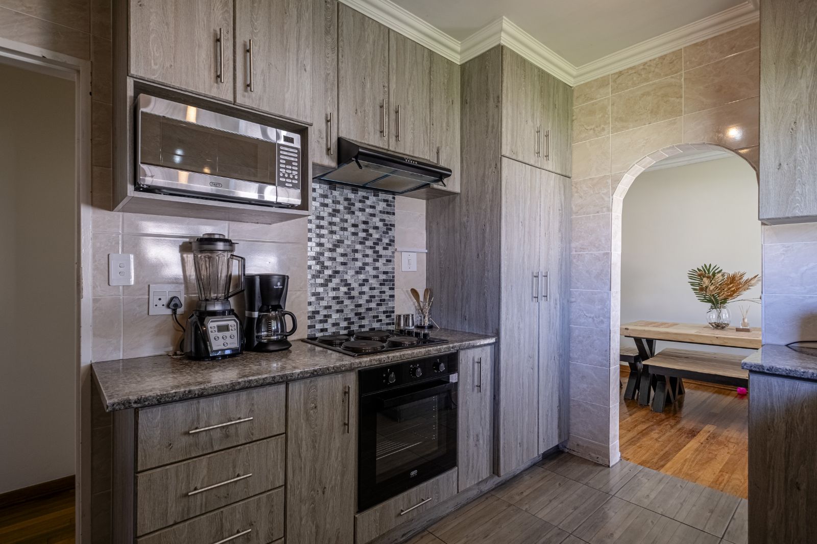 Step outside to the covered stoep, which extends from the dining area, offering the perfect spot for family meals, outdoor entertaining, or simply relaxing. The outdoor braai area, conveniently located just off the dining area, ensures that you’ll have plenty of space to host summer barbecues with friends and family.