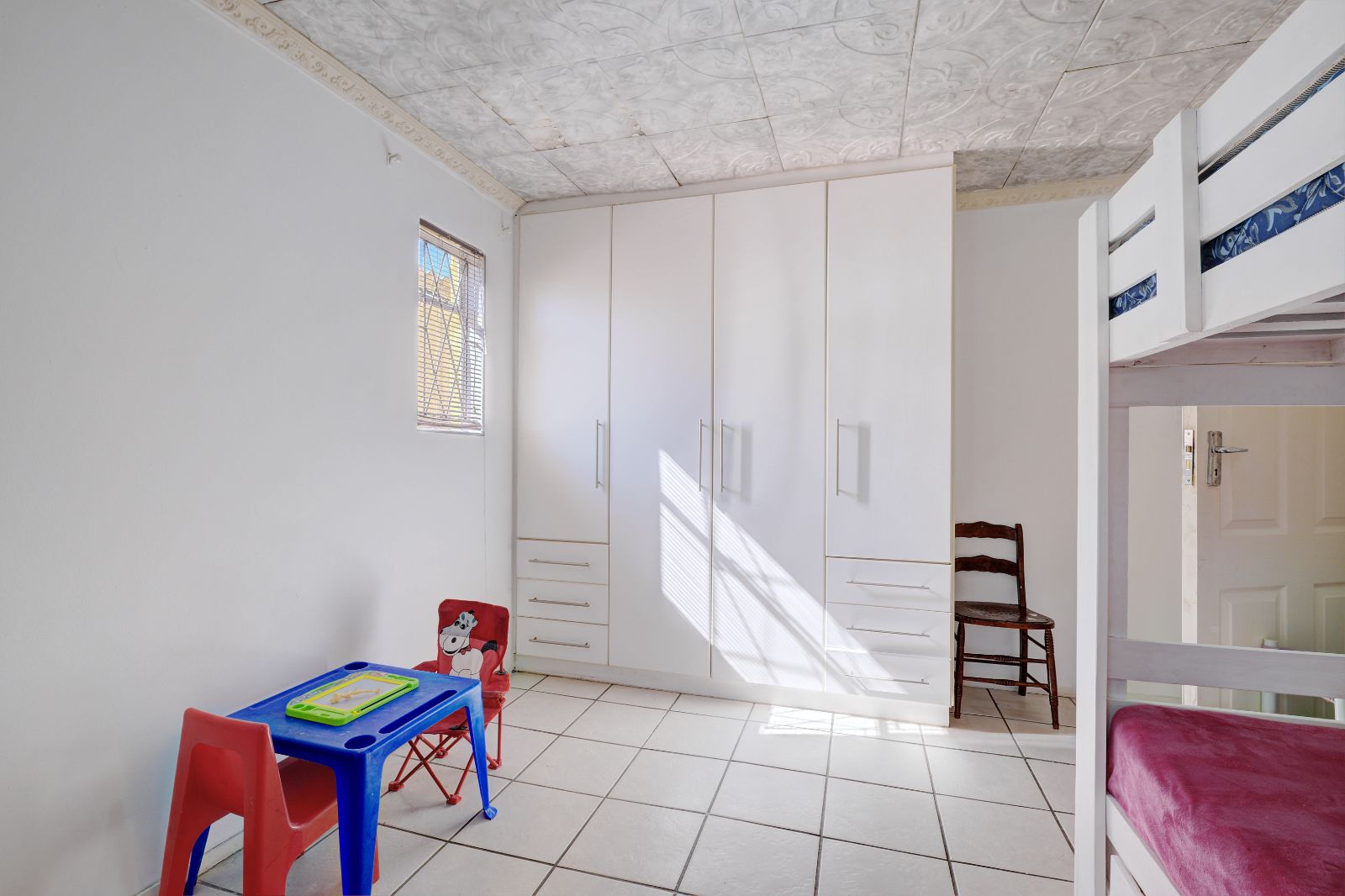Second bedroom has tiles, build in cupboards as well s embedded ceiling.