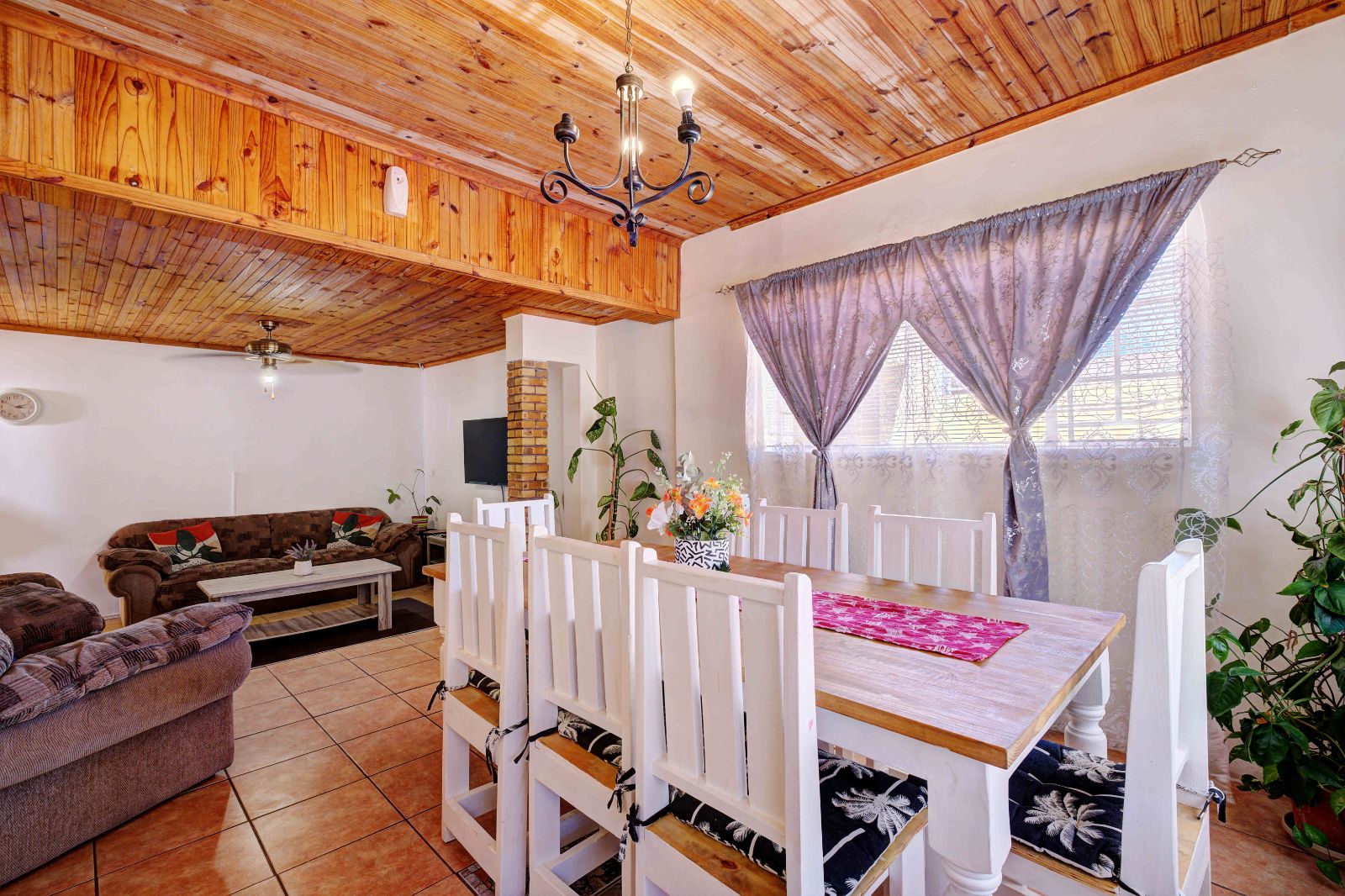 The front door has a security gate and when you enter the house you are greeted by terracotta tiles and a spacious dinning room with a wooden ceiling.