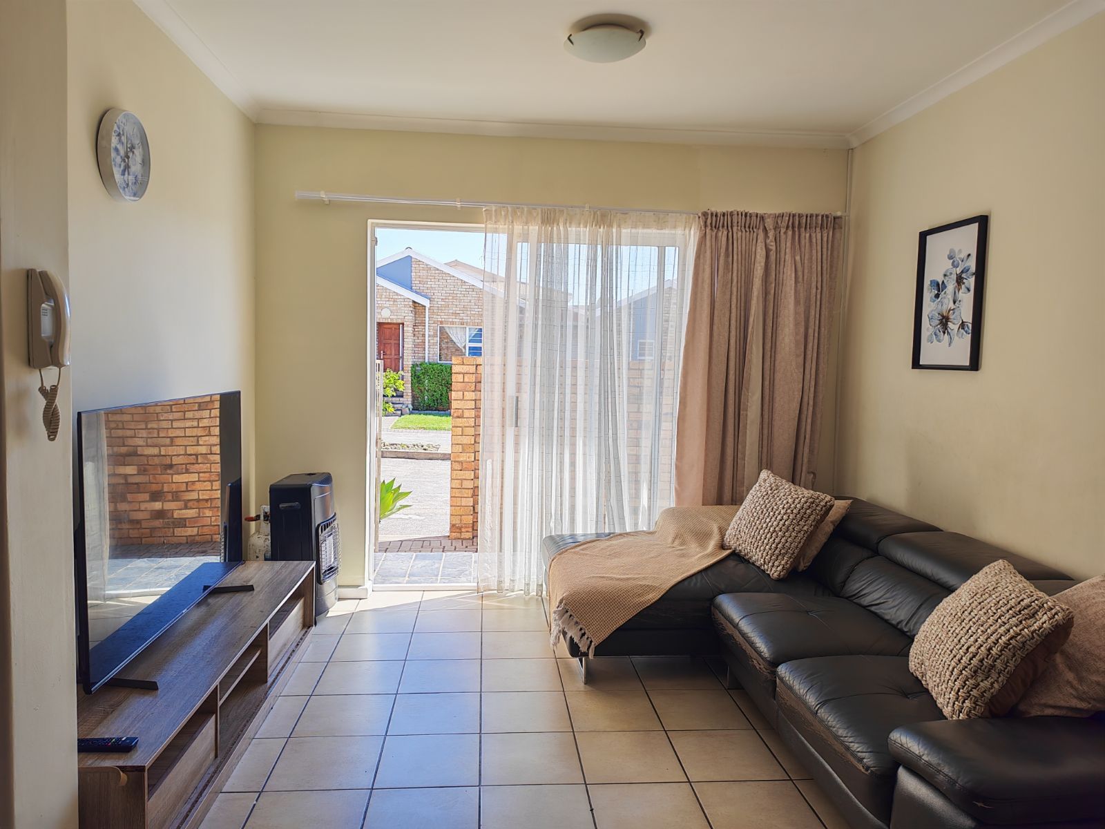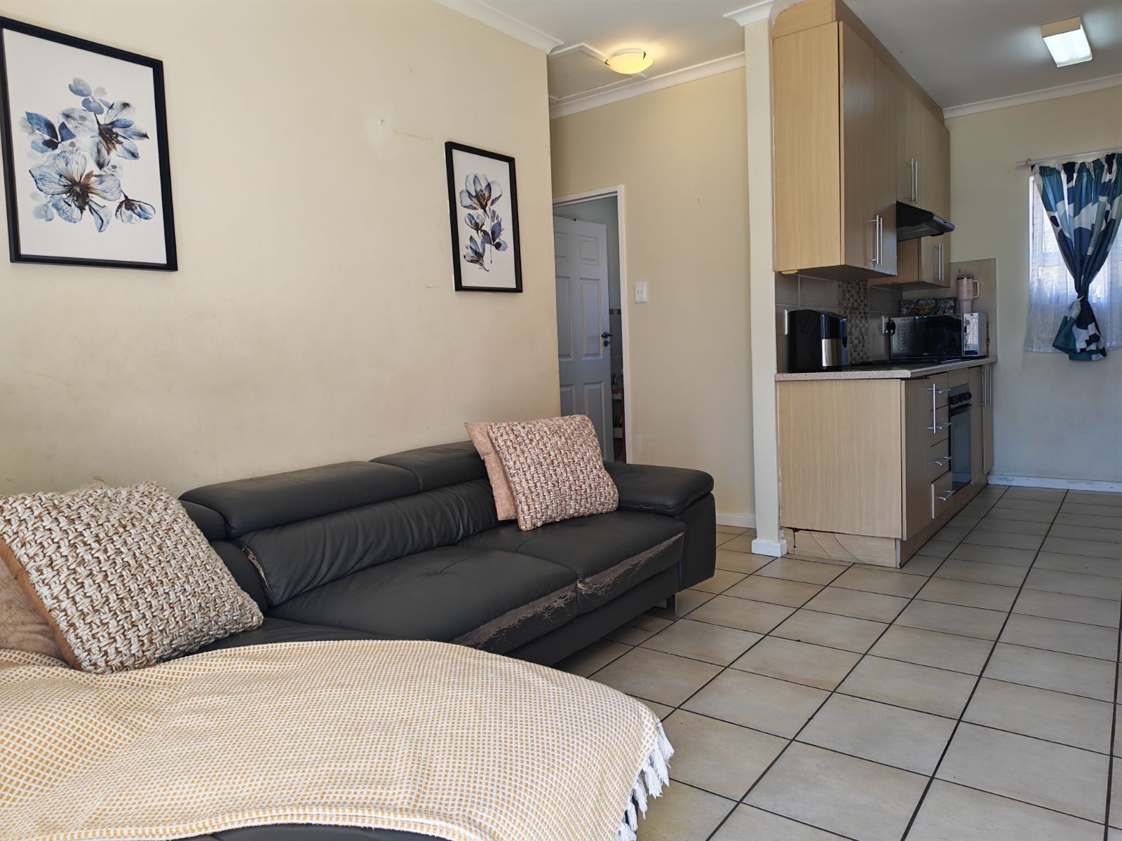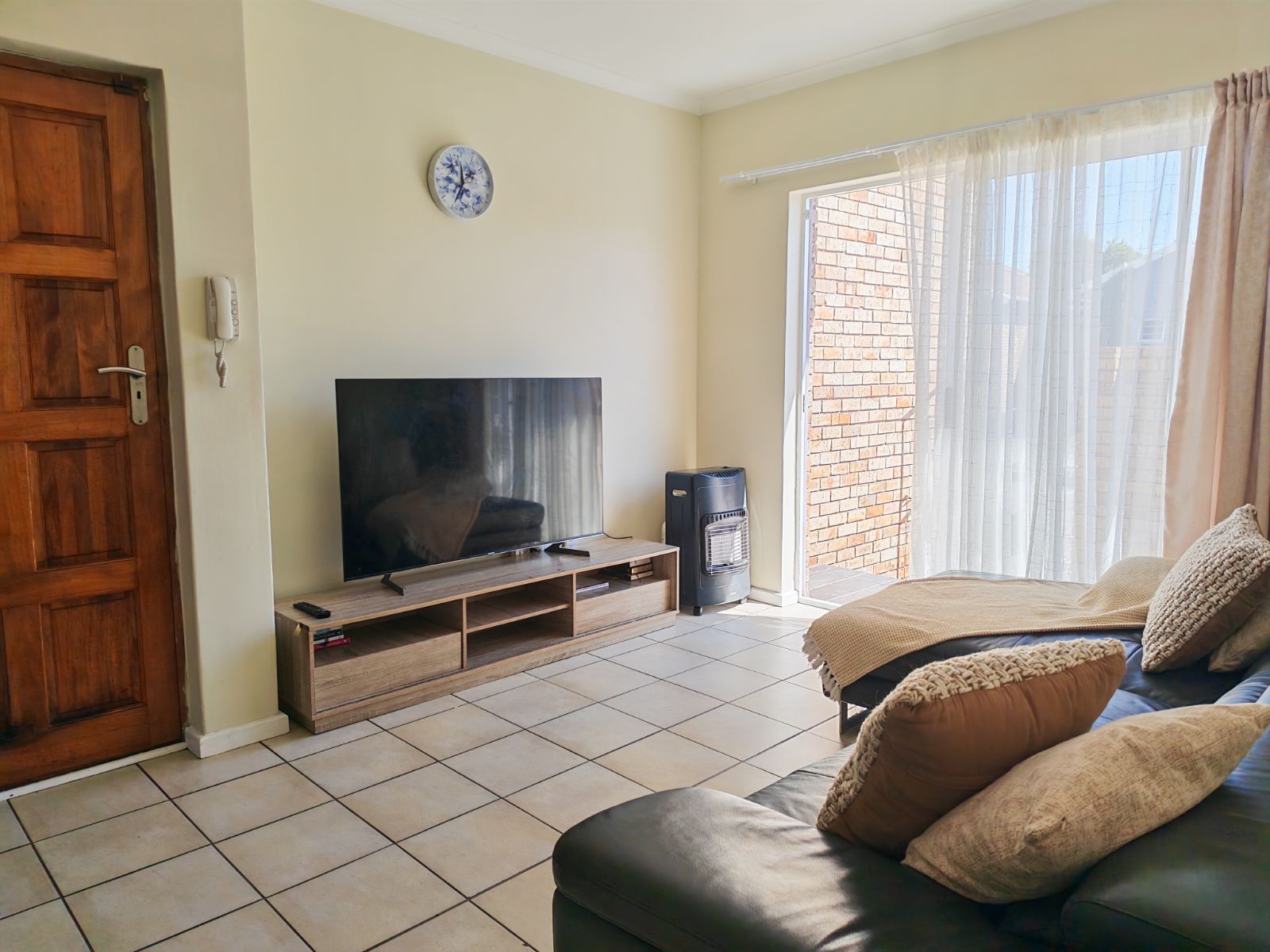 In high demand, a single-storey 2-bedroom town house in double gated community For Sale with the benefit of a very responsible tenant and great rental income already in place. It is an ideal starter home/accommodation for a student/retirement home. This well-planned modern town house has tiled flooring throughout and the open plan kitchen boasts plumbing for a washing machine/dishwasher. The living room has a sliding door which overlooks the small paved patio. For your comfort, the single garage with a parking bay, are situated at your front door. There are no stairs and the complex is PET FRIENDLY with prior consent from Body Corporate.