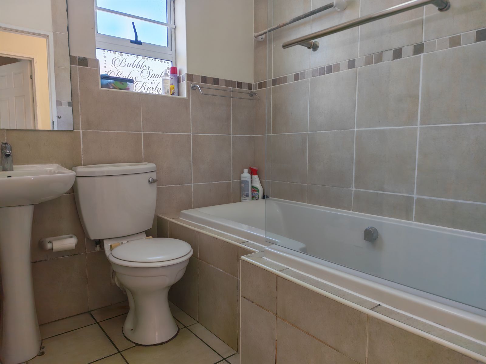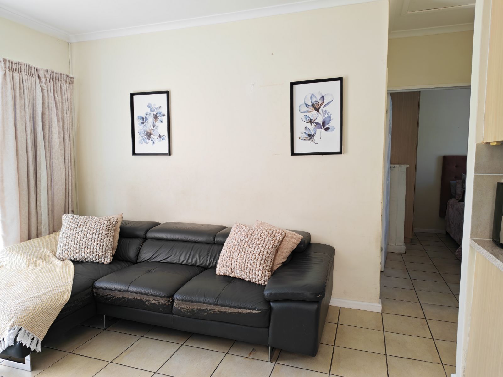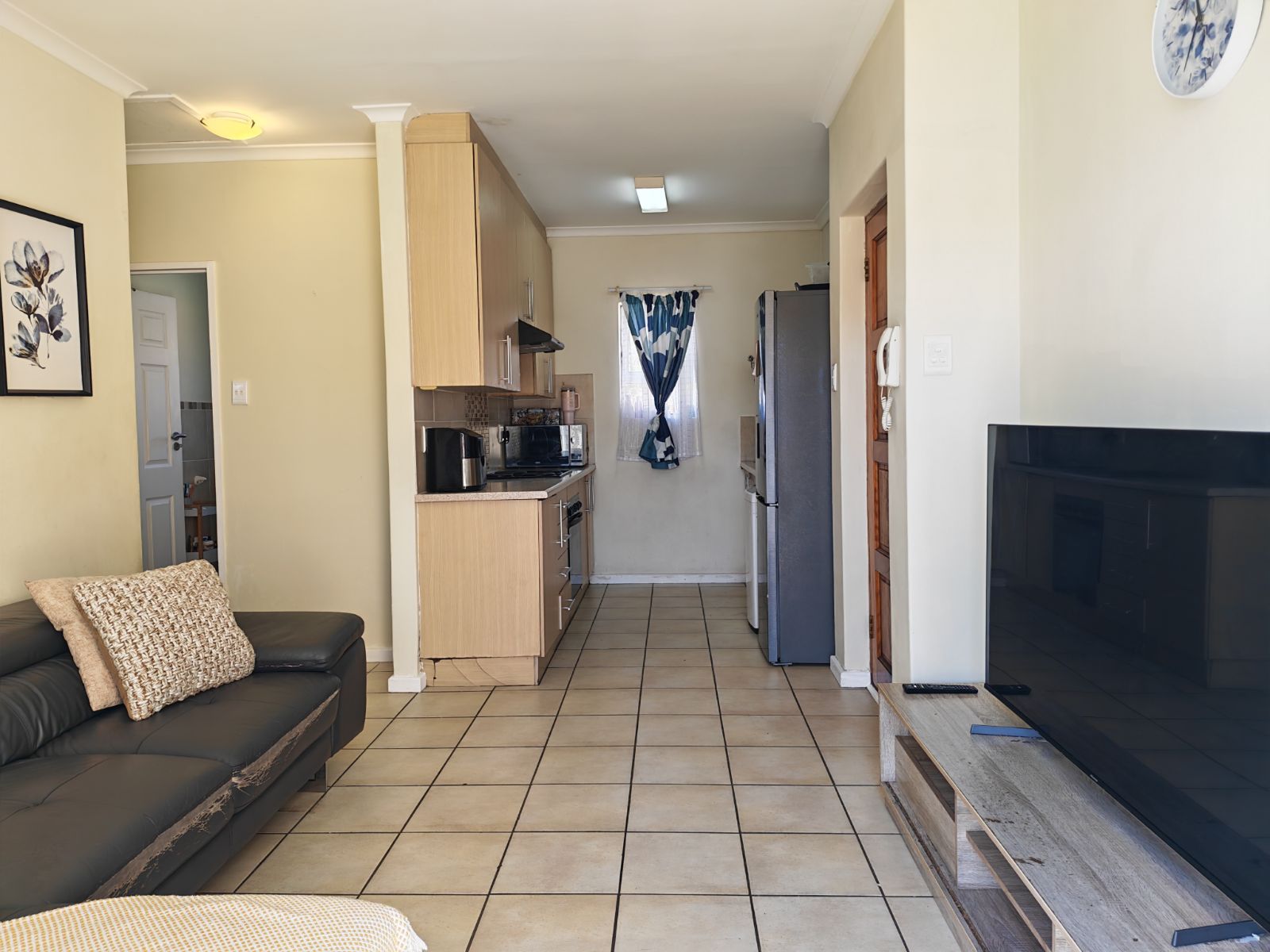 In high demand, a single-storey 2-bedroom town house in double gated community For Sale with the benefit of a very responsible tenant and great rental income already in place. It is an ideal starter home/accommodation for a student/retirement home. This well-planned modern town house has tiled flooring throughout and the open plan kitchen boasts plumbing for a washing machine/dishwasher. The living room has a sliding door which overlooks the small paved patio. For your comfort, the single garage with a parking bay, are situated at your front door. There are no stairs and the complex is PET FRIENDLY with prior consent from Body Corporate.