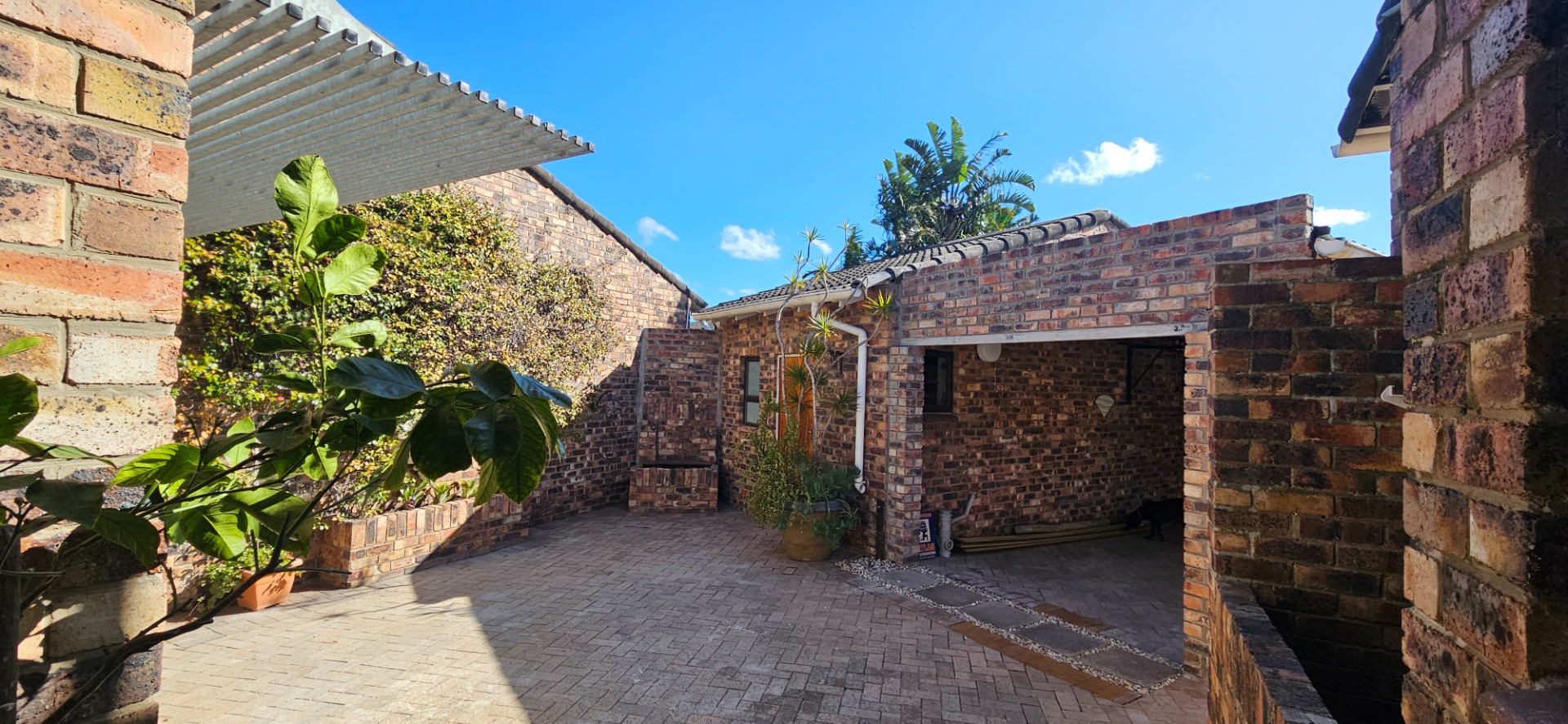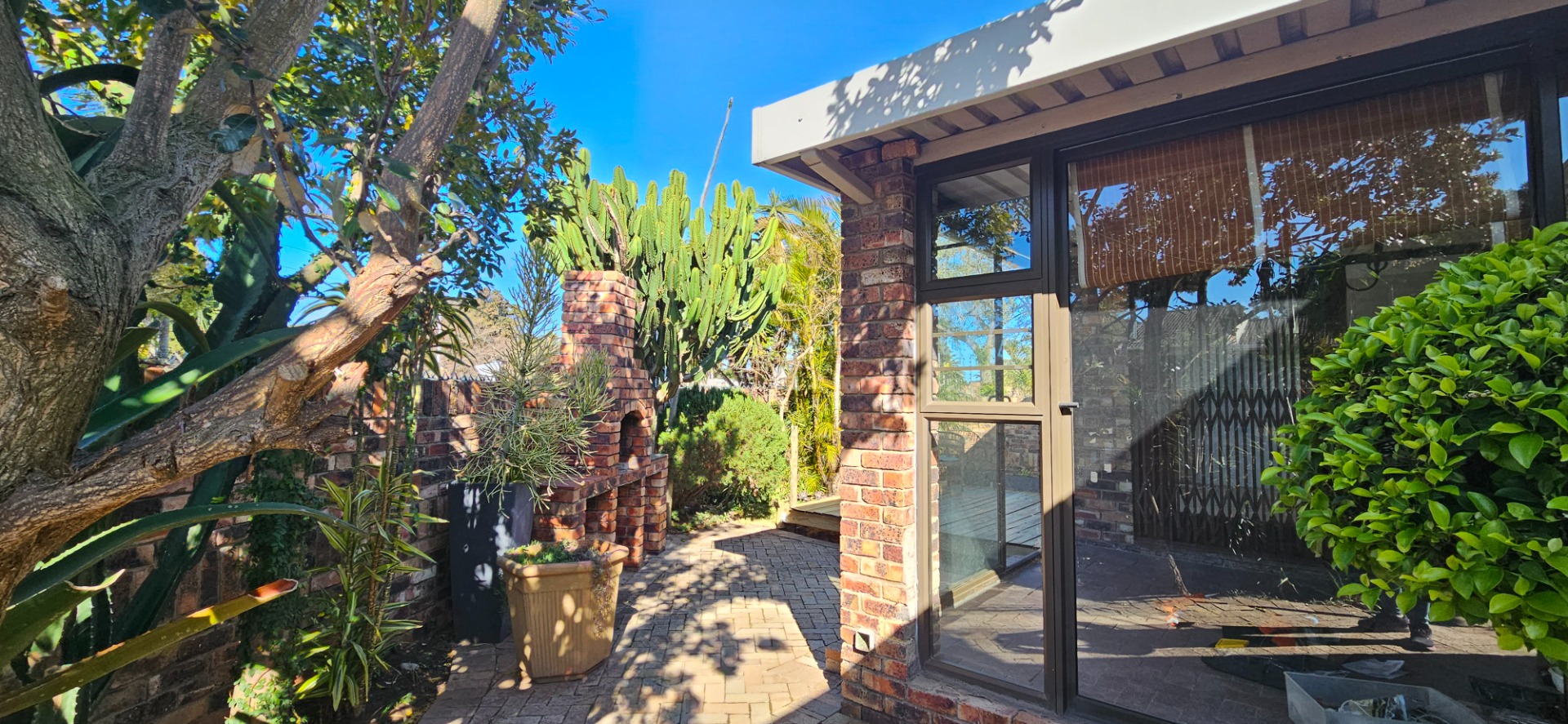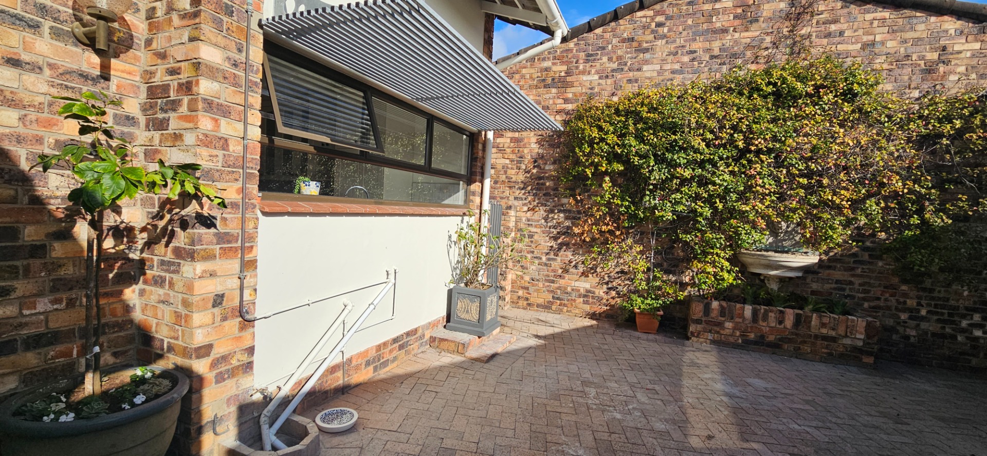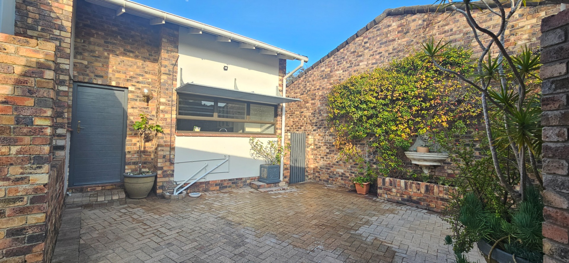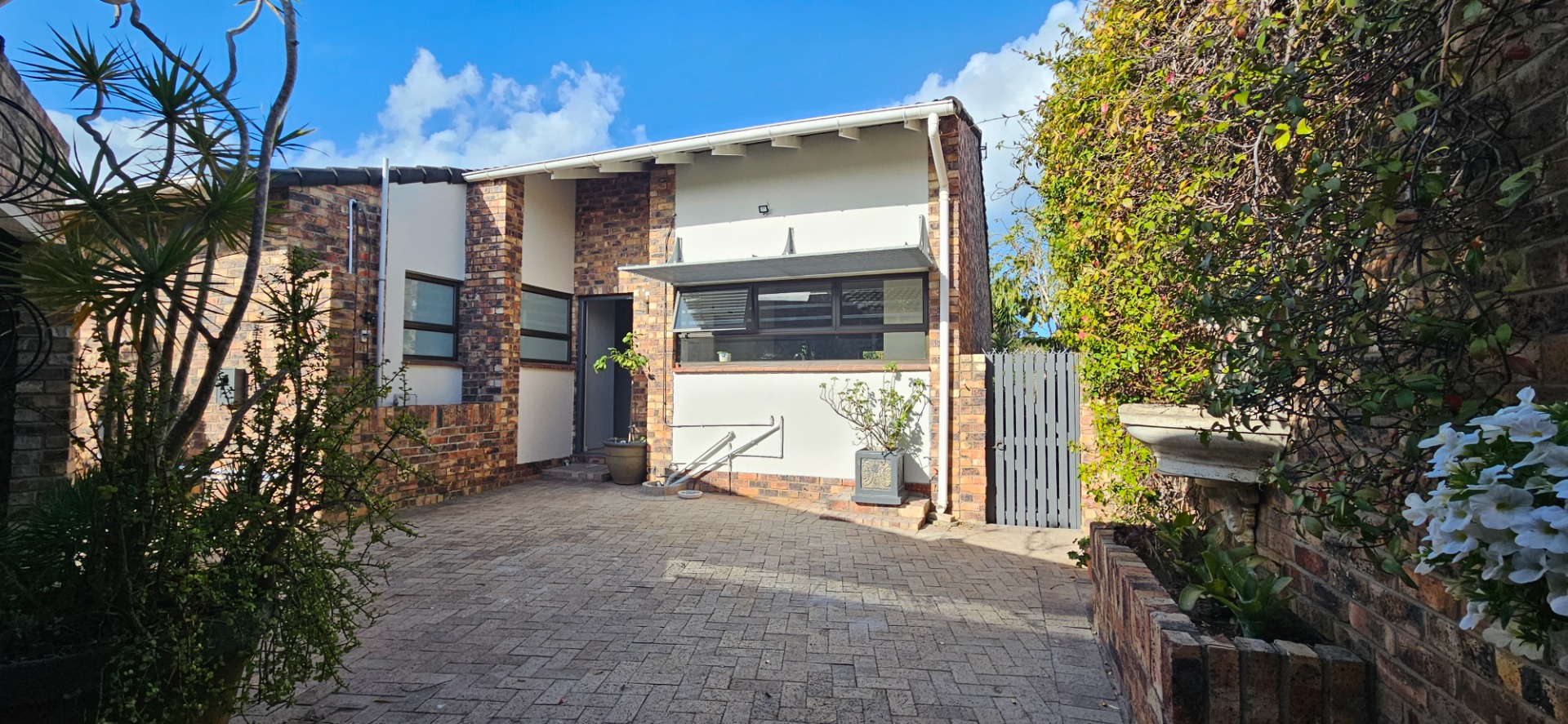 - Low-maintenance garden with paved sections and a patch of grass plus decking at the east-facing entertainment side of the property