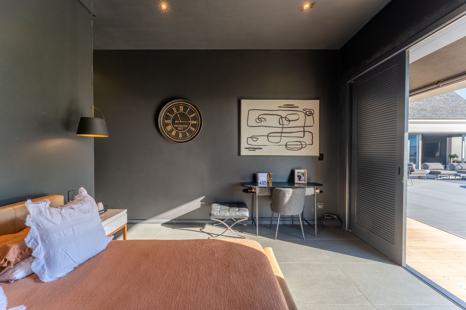 The residence offers four luxurious bedroom suites, each beautifully appointed, while the main suite enjoys exceptional privacy and breathtaking views. An additional outside room with its own bathroom provides ideal accommodation for guests, staff or extended family.