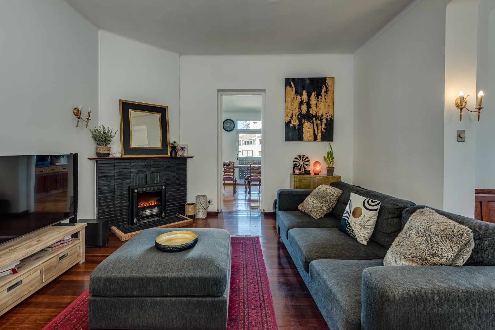 From the moment you enter, the layout reflects thoughtful planning, making excellent use of the available space throughout the home. The entrance hall flows straight through toward the kitchen, while the lounge sits to your right, a warm and inviting space featuring an electric fireplace and two charming bay windows, one with a built-in love seat, perfect for a quiet reading corner. The lounge flows seamlessly into the dining room, with the dining area and kitchen designed open-plan for easy, modern living.