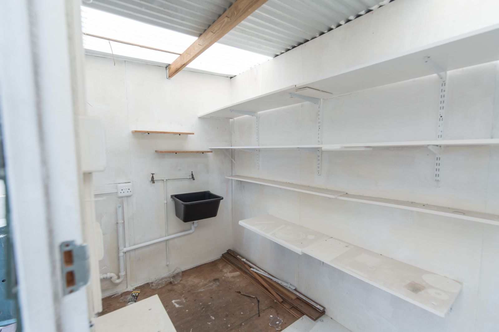 Step into the backyard and you'll find a charming water sluice – perfect for a Koi pond – as well as a small outbuilding currently serving as a laundry and storage area.