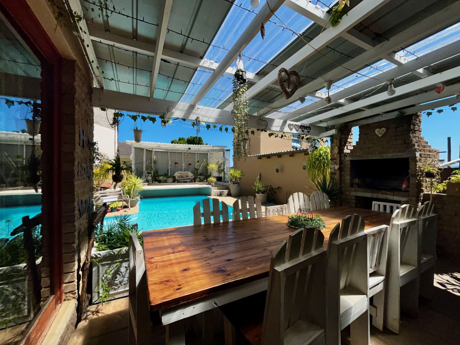 Entertainment & Outdoor Living: The indoor braai area opens to an undercover patio with an outdoor braai, overlooking the sparkling pool. On the opposite end, an elevated covered entertainment area provides a lovely view of the pool and backyard.