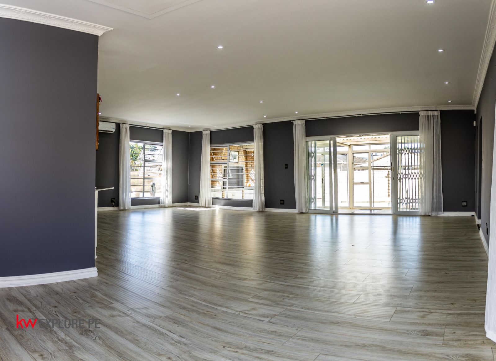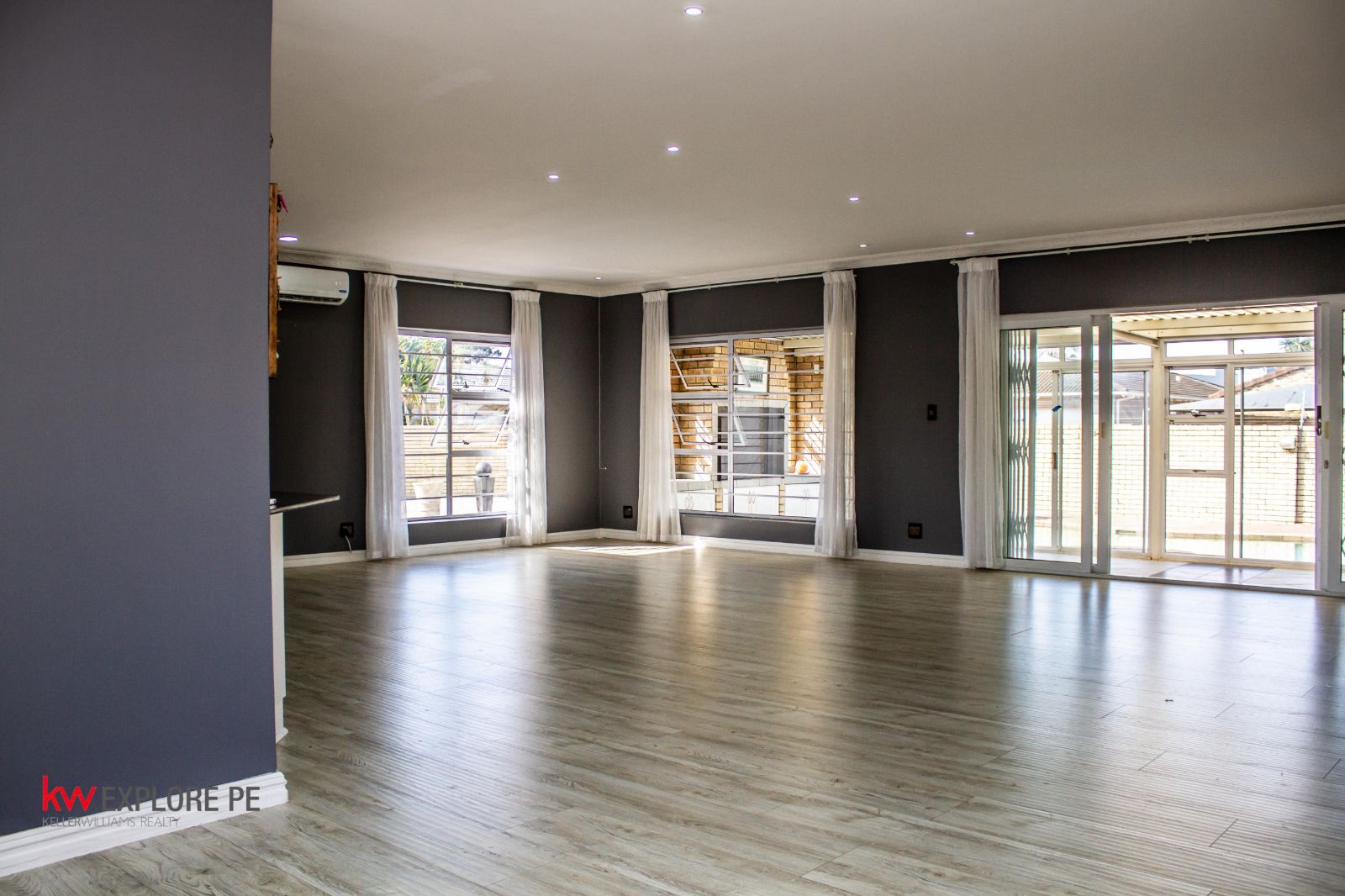 A huge open-plan dining, living, and kitchen area fitted with air-conditioning — ideal for family gatherings and modern living.