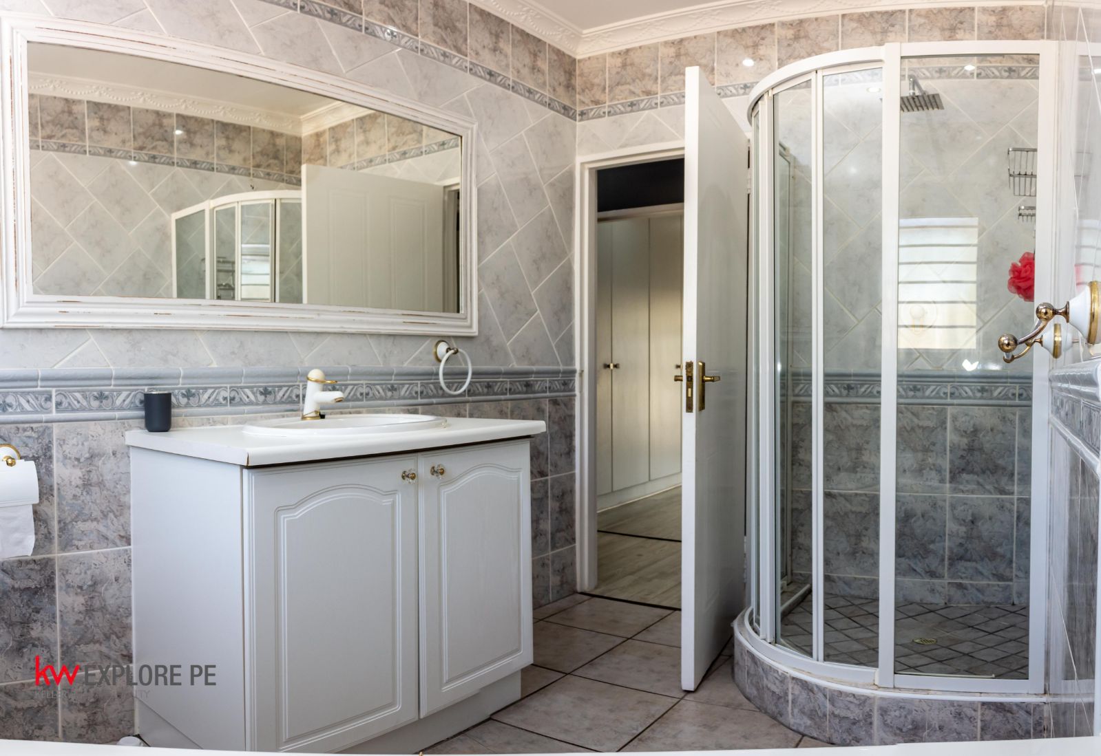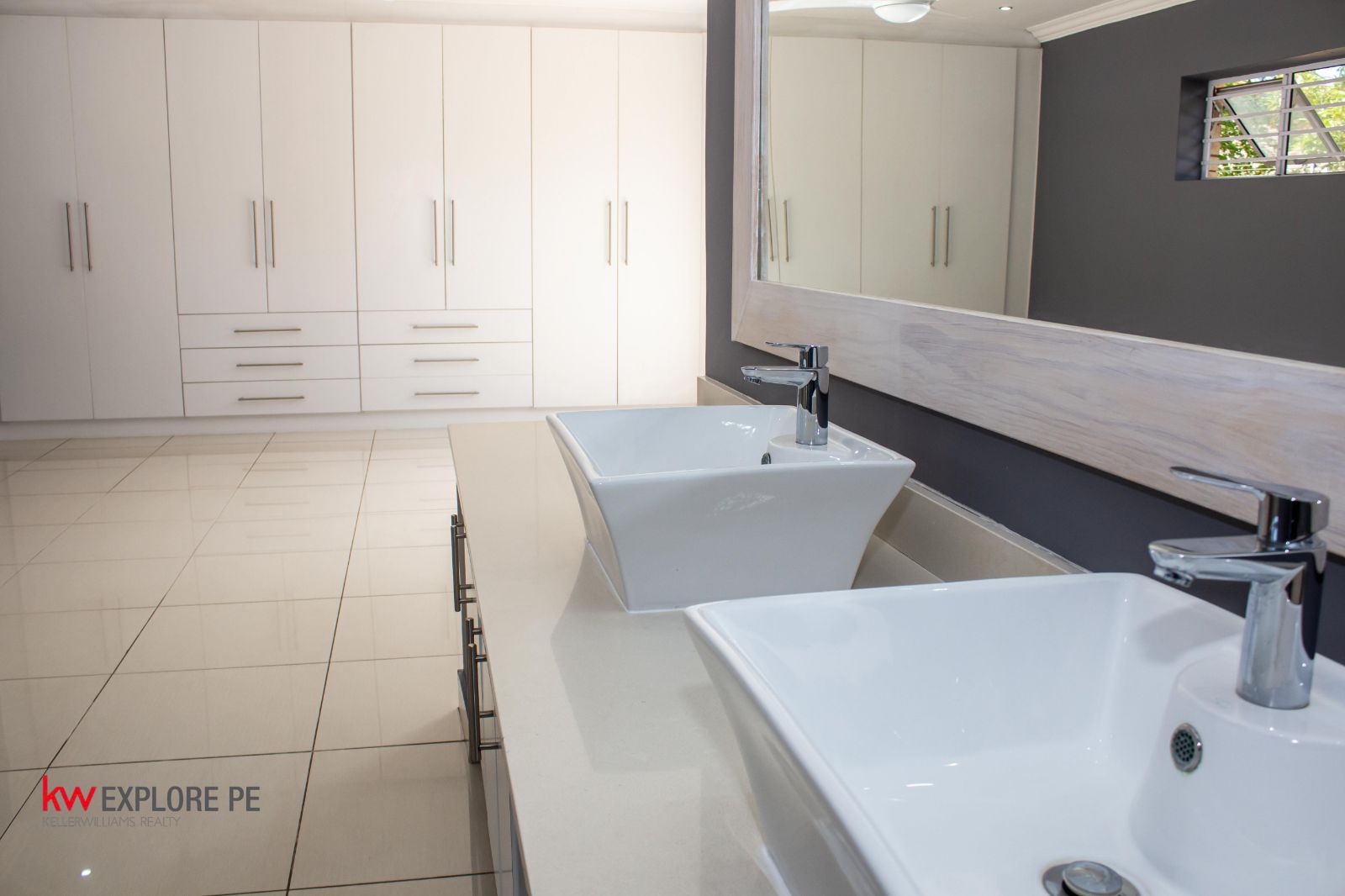 The master suite is massive, classy, and elegantly finished, complete with a sophisticated en-suite bathroom and a huge vanity mirror.