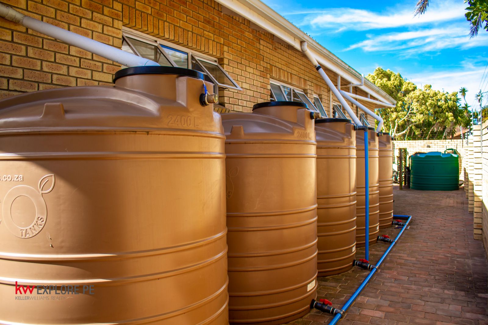 5 x 2,500L water tanks, borehole, and a system feeding directly into the house for maximum water efficiency.