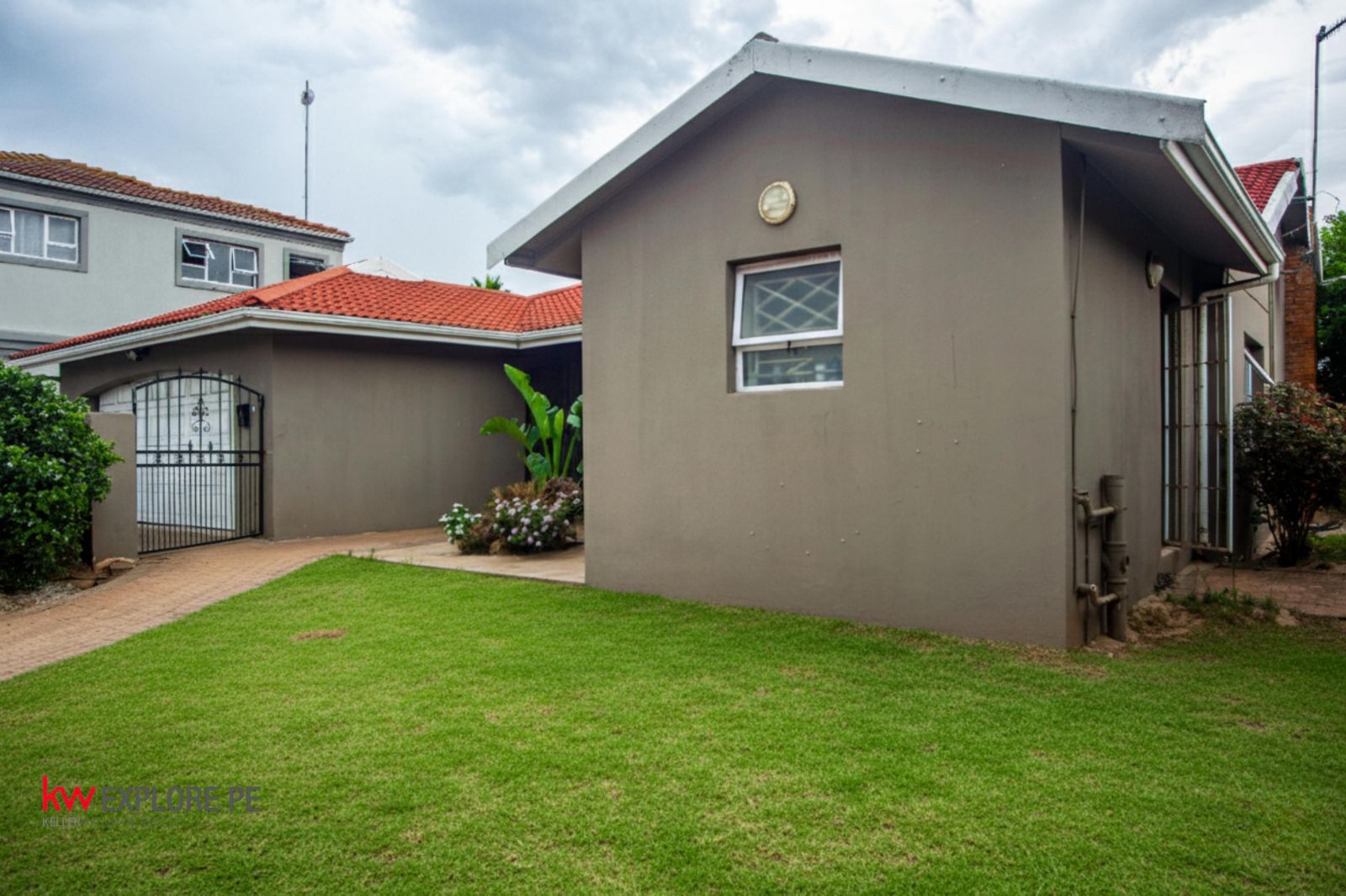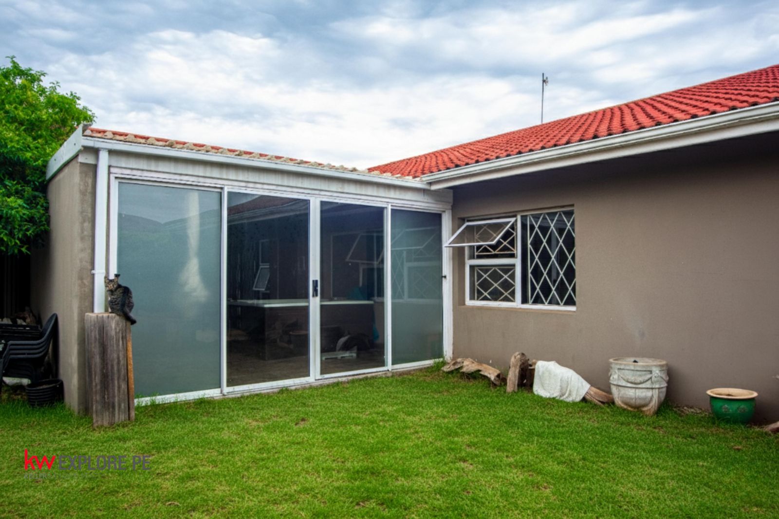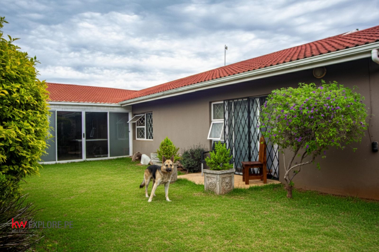 The home also offers a double garage, a tiled roof for durability and classic appeal, and a Wendy house in the yard for extra storage or workspace.