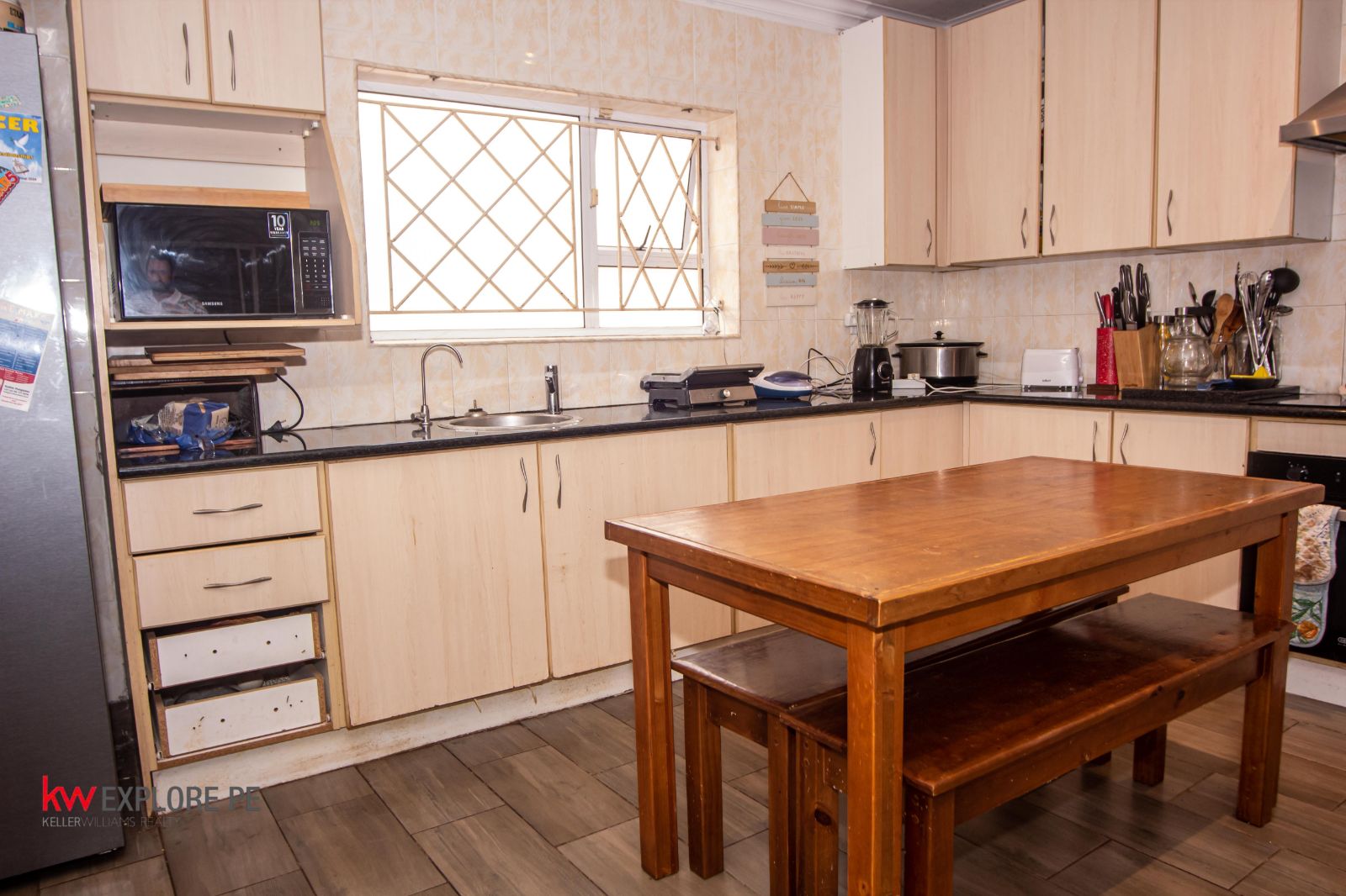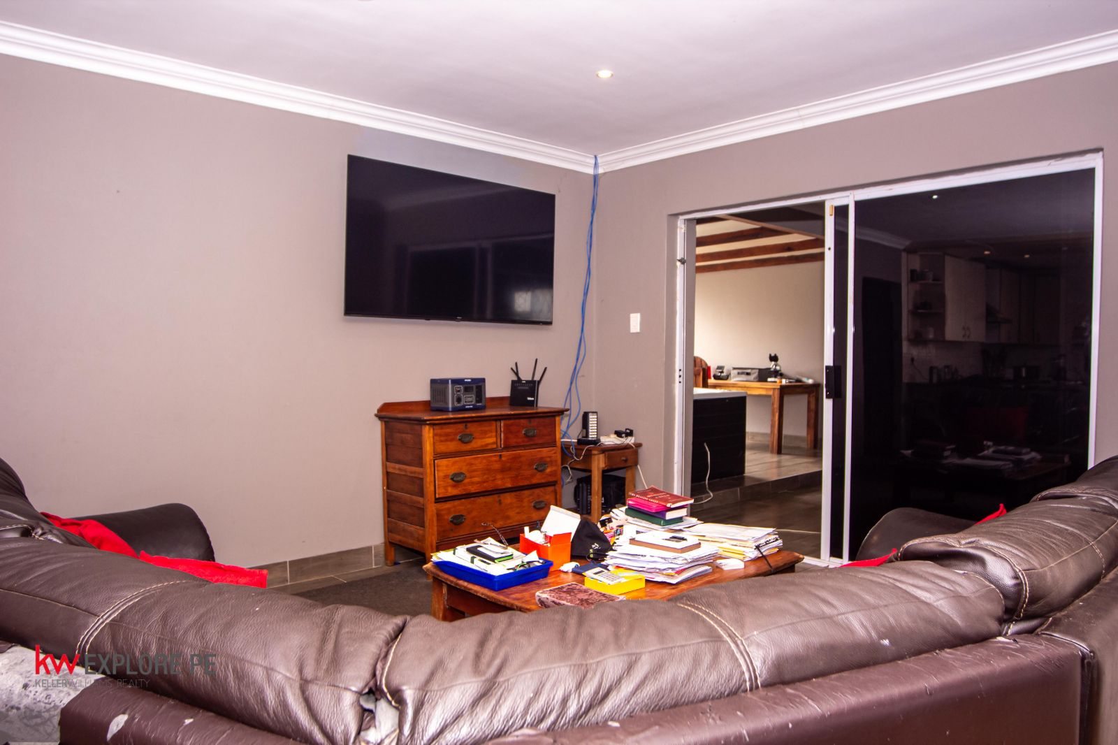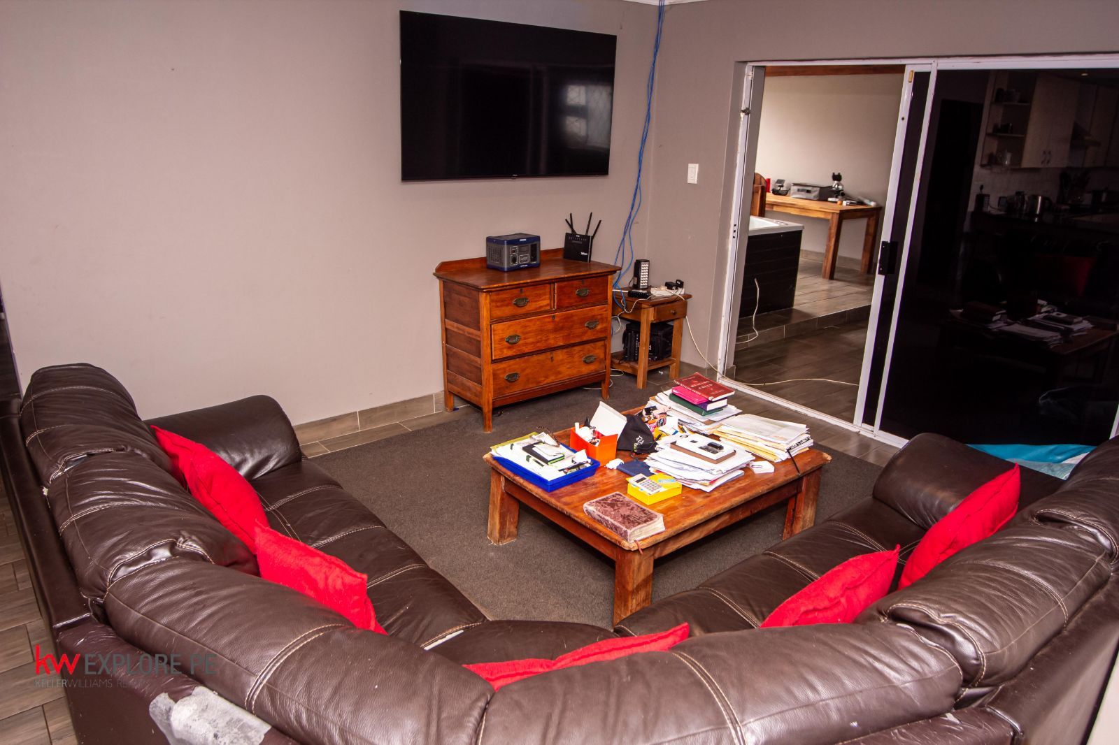 The heart of the home is a beautifully flowing open-plan kitchen and living area, complemented by a generous dining room ideal for formal dinners or everyday family meals. The kitchen includes a practical scullery that keeps the main space neat while still maintaining that open, connected feel.