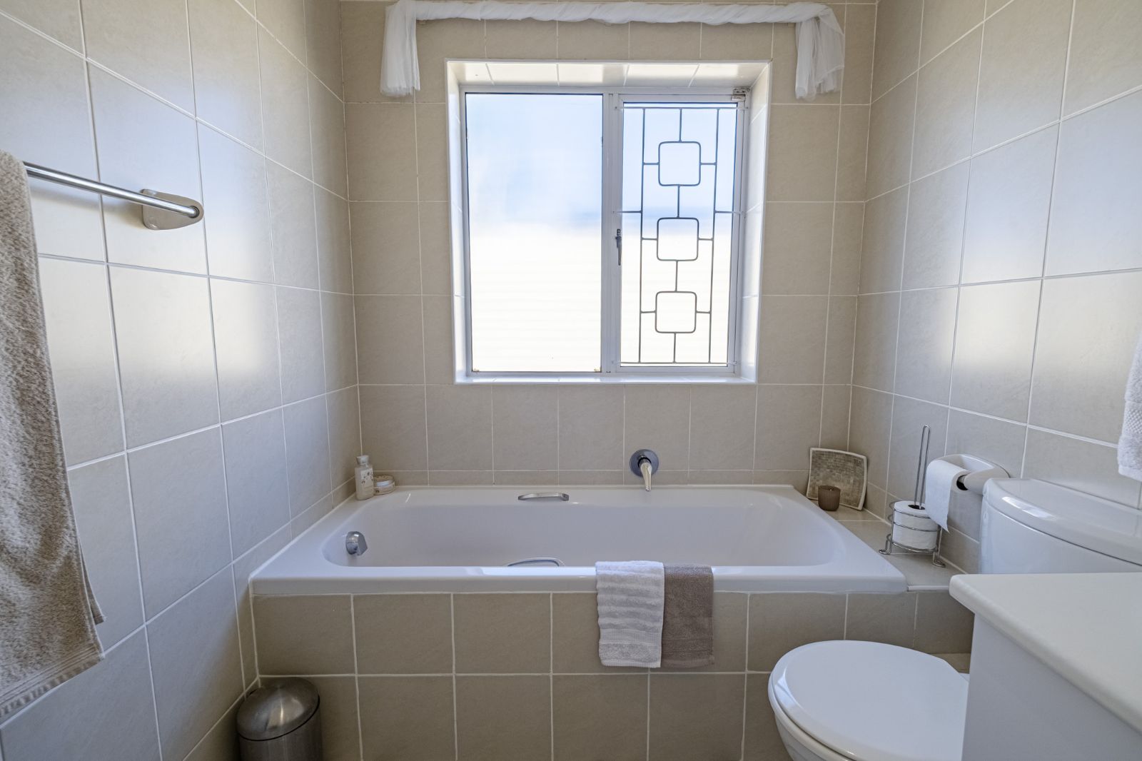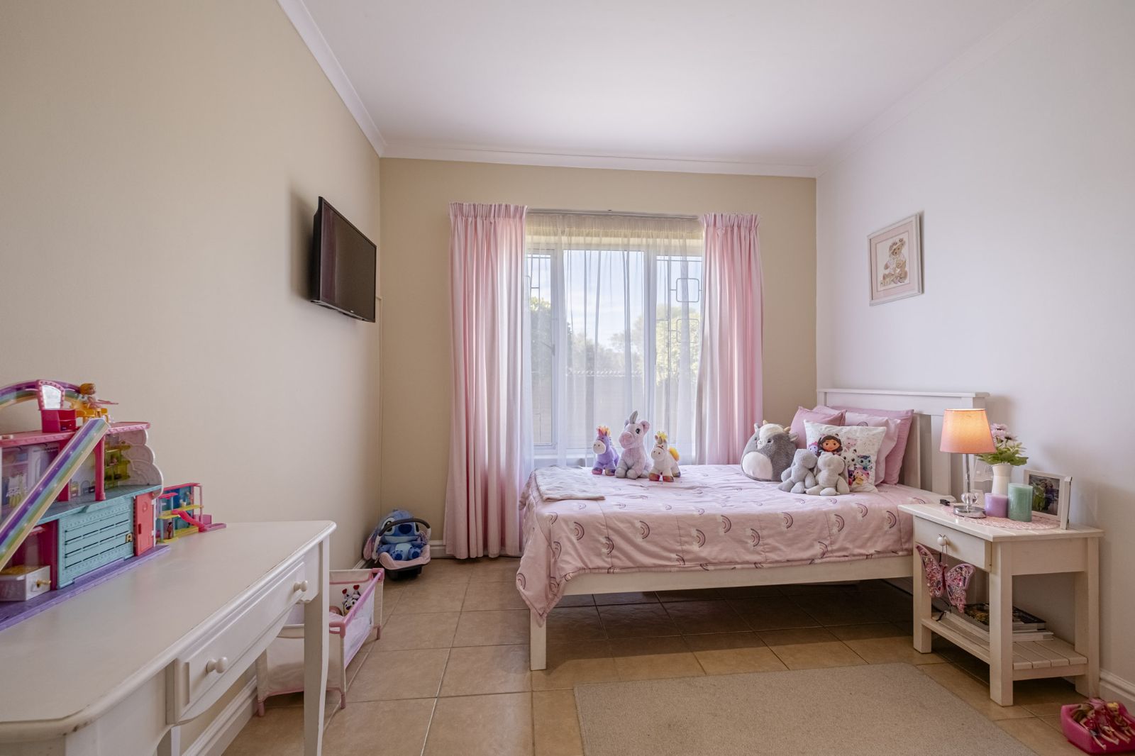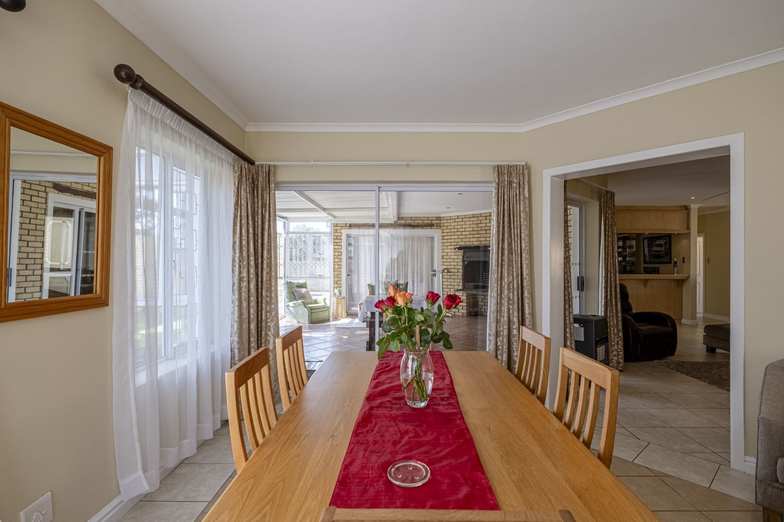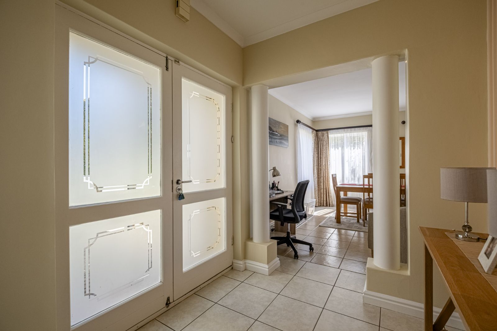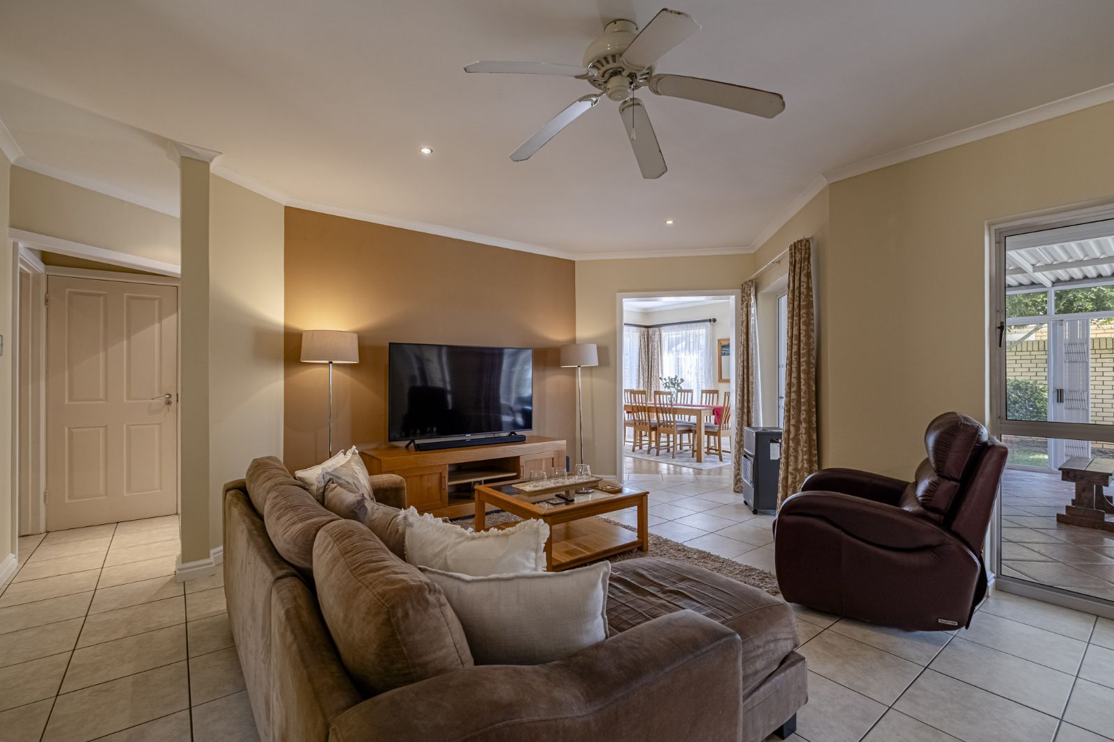 The modern kitchen offers ample cupboard space and a separate scullery, flowing effortlessly into the open-plan dining and lounge area. Entertain in style in the enclosed braai room, complete with a built-in bar, opening out to the pool area — perfect for year-round gatherings with friends and family.