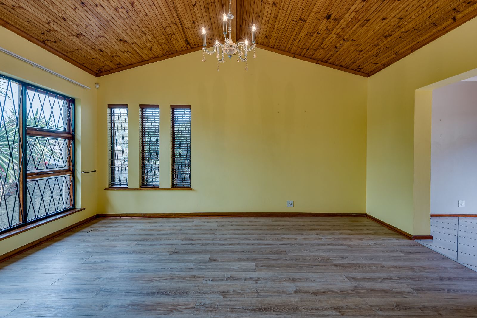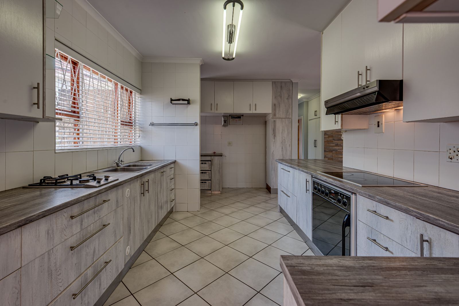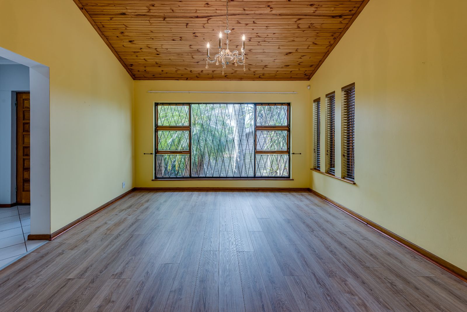 Enjoy effortless open-plan flow: to the left of the entrance is a cosy lounge, leading through to the dining room, which connects seamlessly to a beautiful, modern kitchen, complete with the option of gas or electric cooking. A separate family room features wooden glass sliding doors that open onto a thatch lapa with built-in braai, overlooking the sparkling swimming pool, perfect for year-round entertaining.