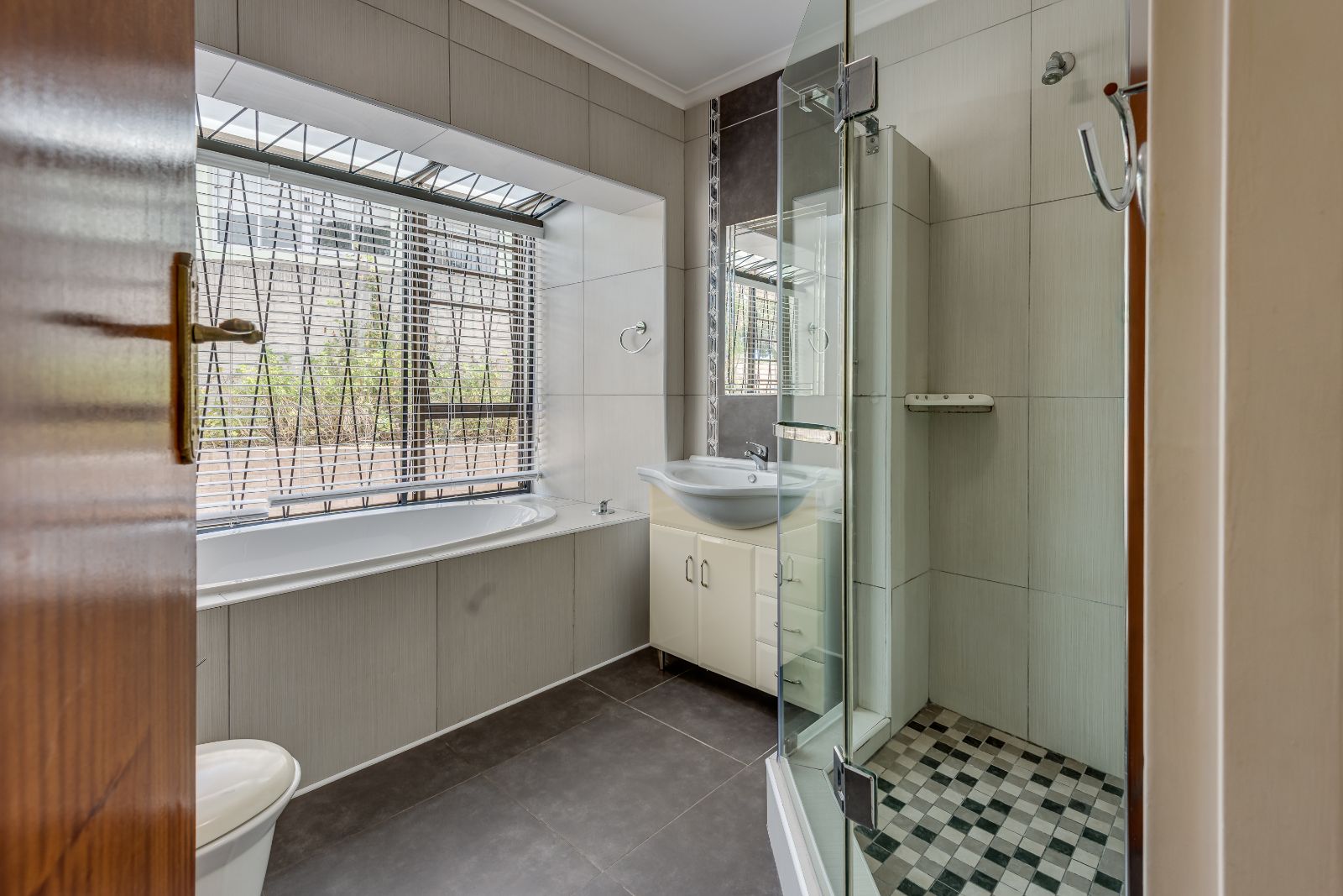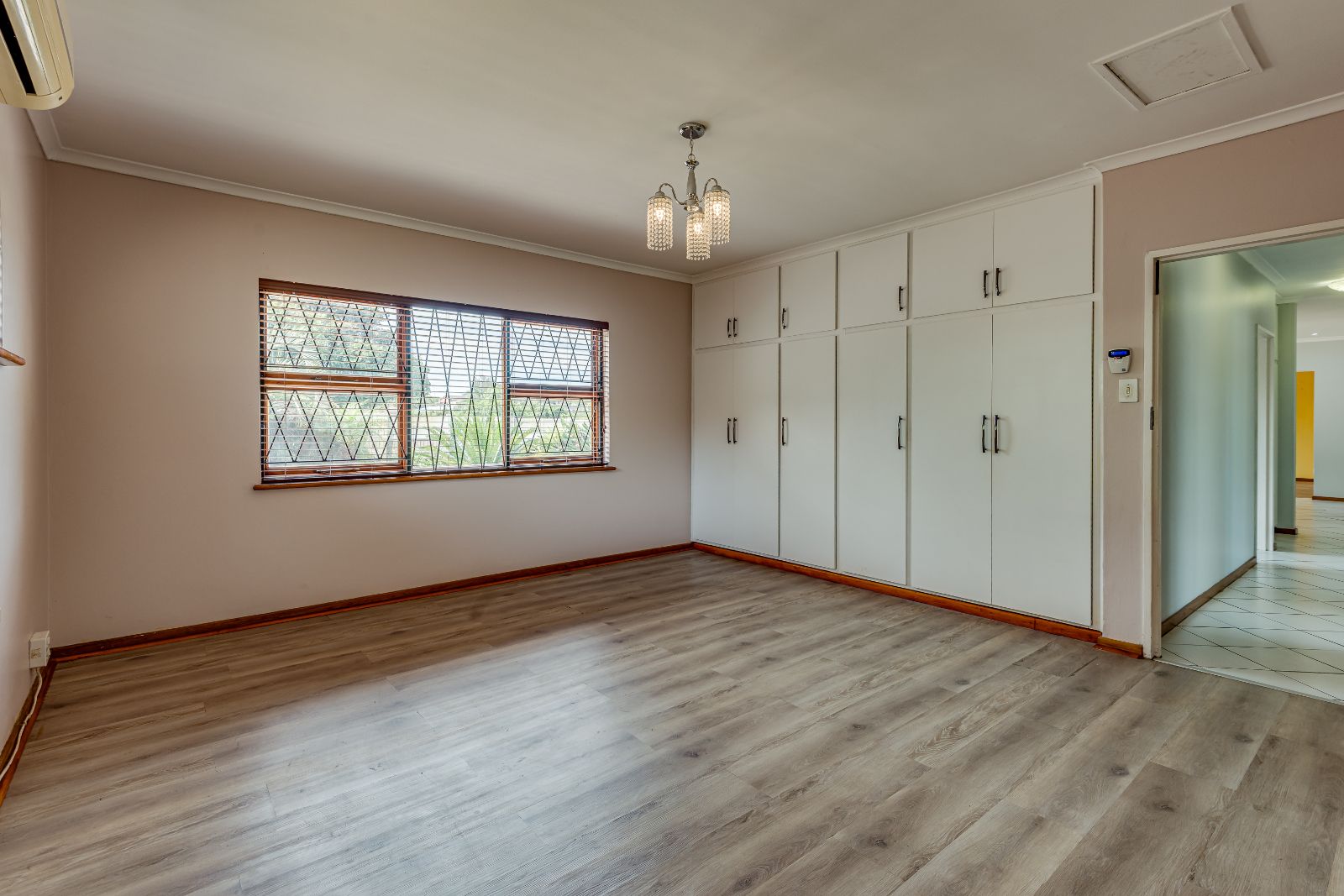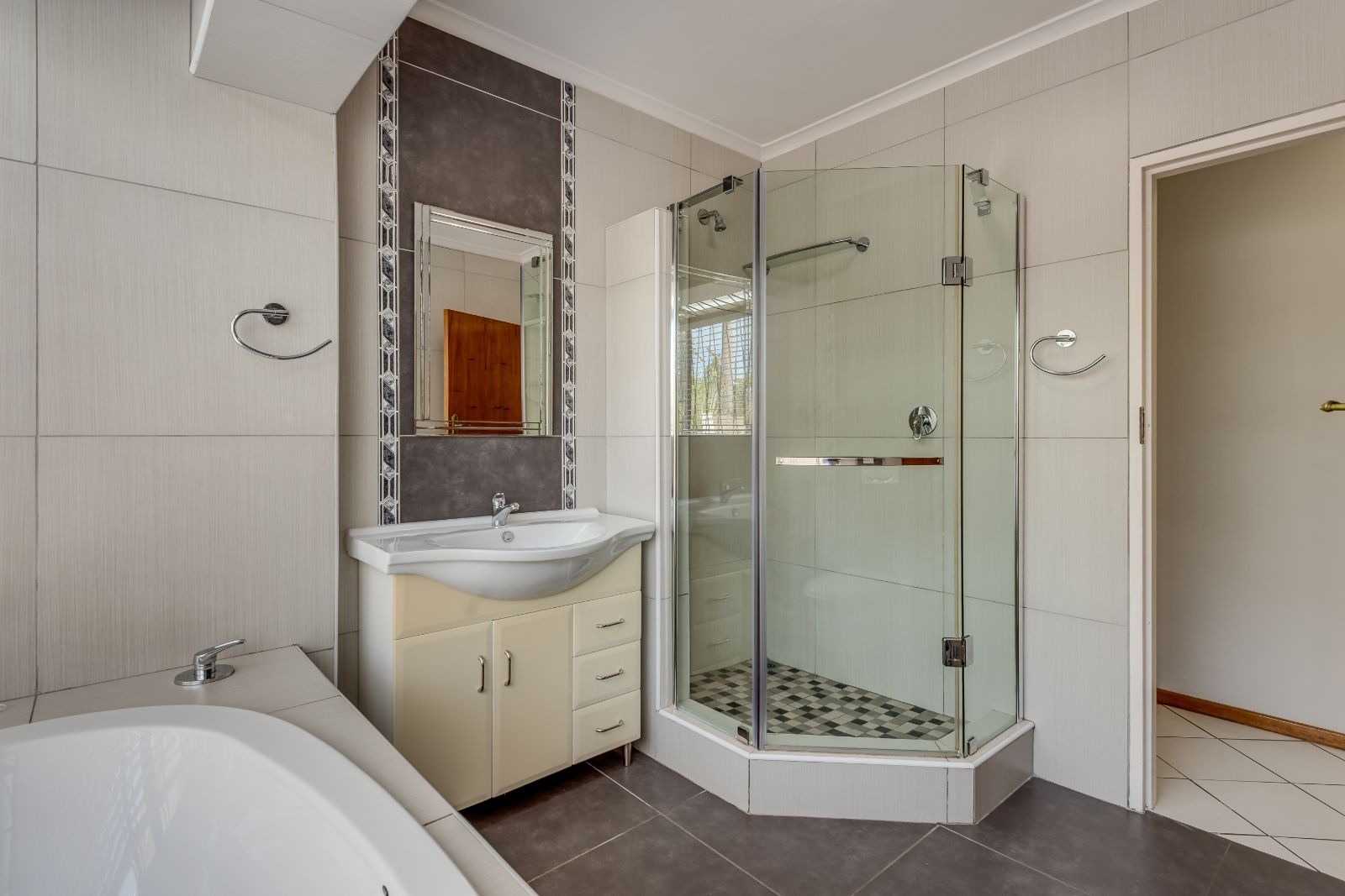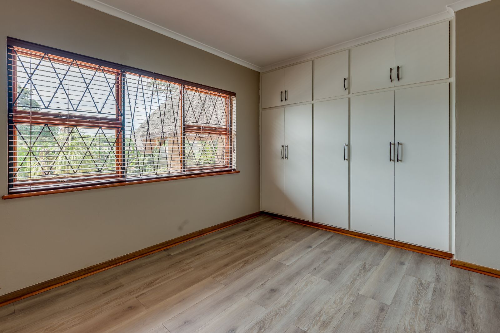 Enjoy effortless open-plan flow: to the left of the entrance is a cosy lounge, leading through to the dining room, which connects seamlessly to a beautiful, modern kitchen, complete with the option of gas or electric cooking. A separate family room features wooden glass sliding doors that open onto a thatch lapa with built-in braai, overlooking the sparkling swimming pool, perfect for year-round entertaining.